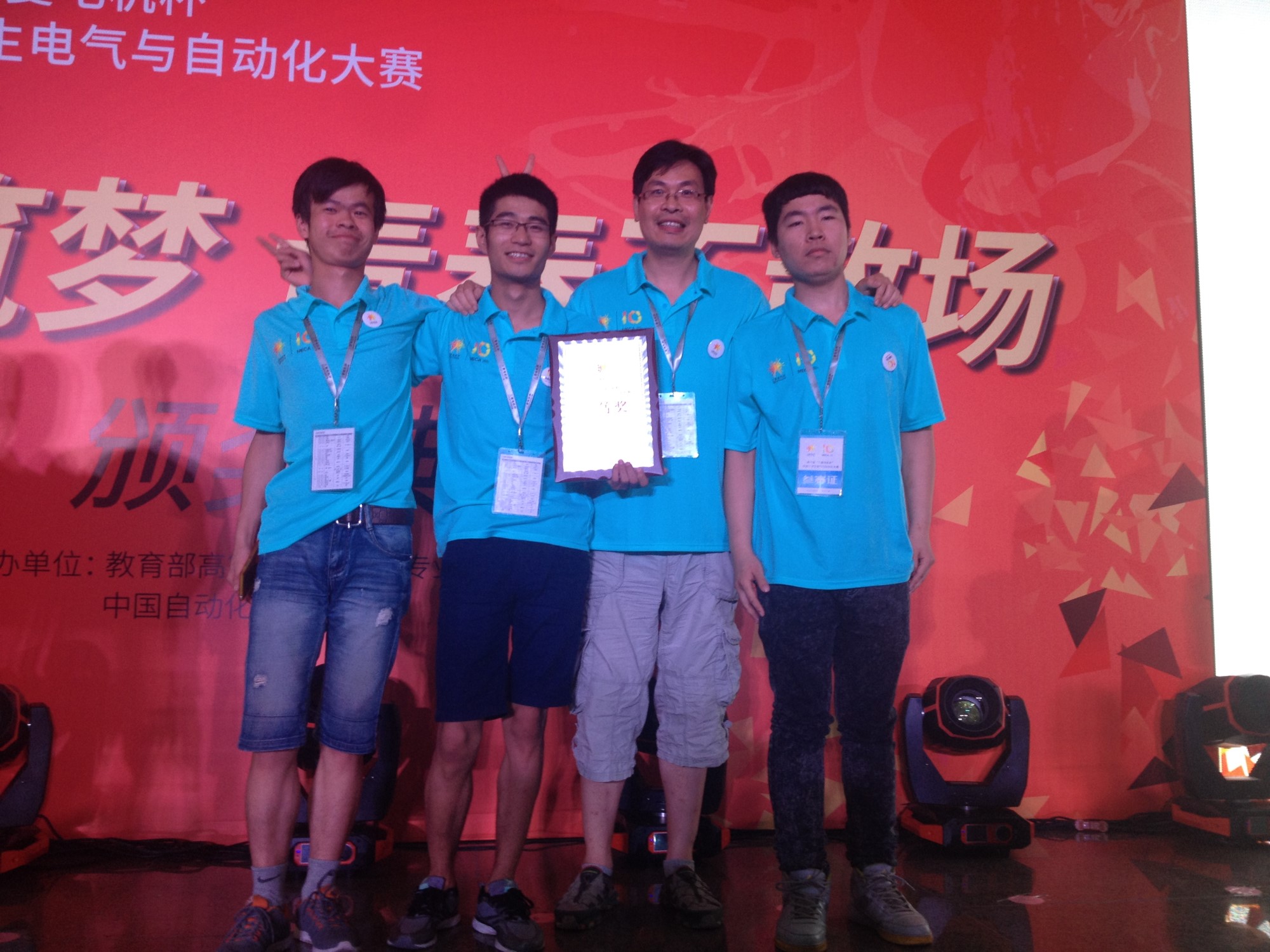8月1日至4日,由教育部高等公司电气类专业教学指导委员会及中国自动化学会主办的第十届“三菱电机杯”全国老员工电气与自动化大赛在天津大学举行,由公司石建飞和朱学东老师担任指导教师,邹家男、刘海盟和沈晓飞三名同学组成的飞鹰队获得全国三等奖。