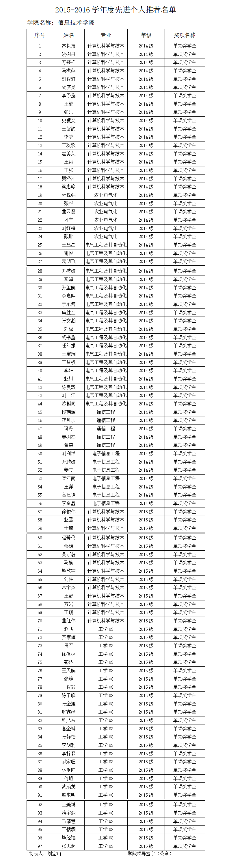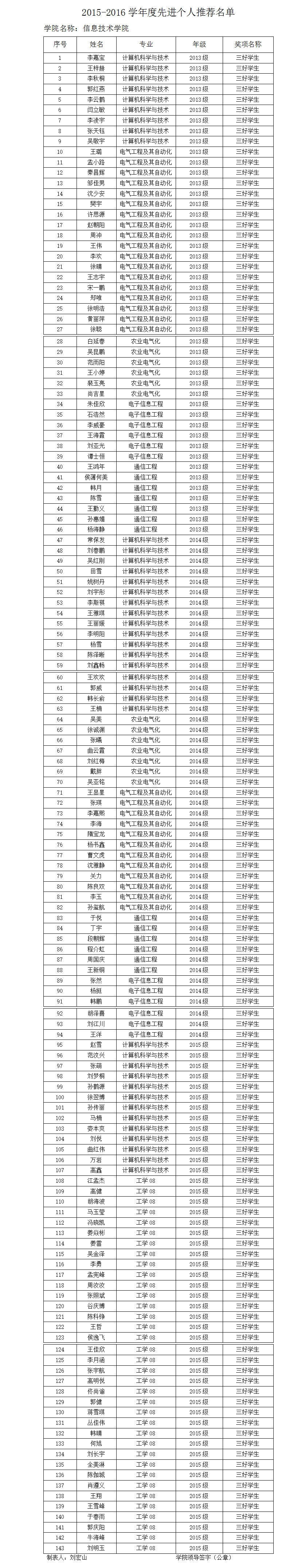 公司关于对2015-2016学年度评奖评优结果的公示