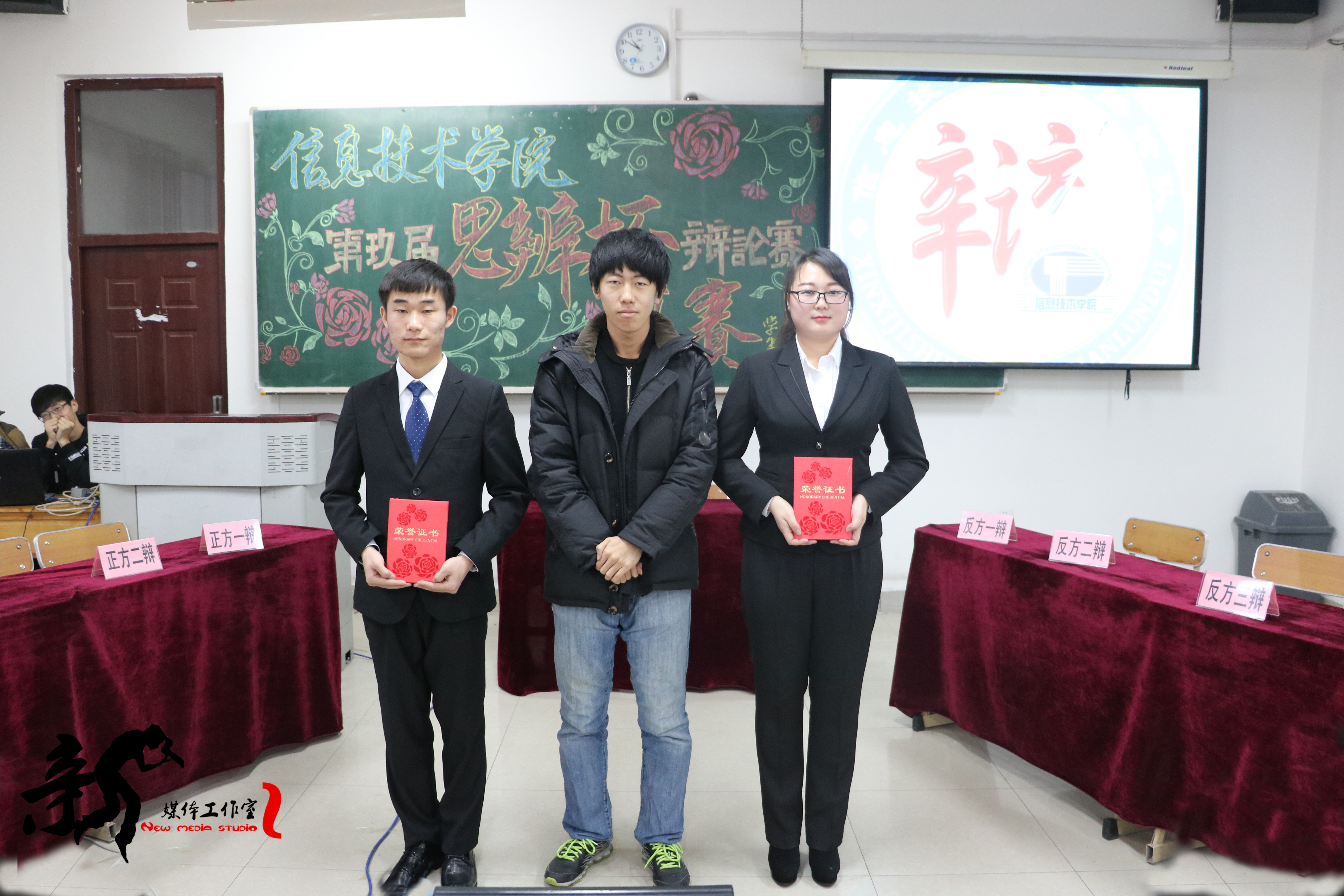 最后,以下同学获得了“最佳辩手”称号:发家致富代表队一辩林宇(工学三班)、排除隐患代表队二辩侯宇航(工学十班)、鸭梨大好队四辩袁娜(计算机二班)、百舸争流代表队二辩蒋伟康(工学七班)、突破自我队四辩毕志伟(工学六班)、学有所成代表队二辩曲姝炫(计算机二班)。