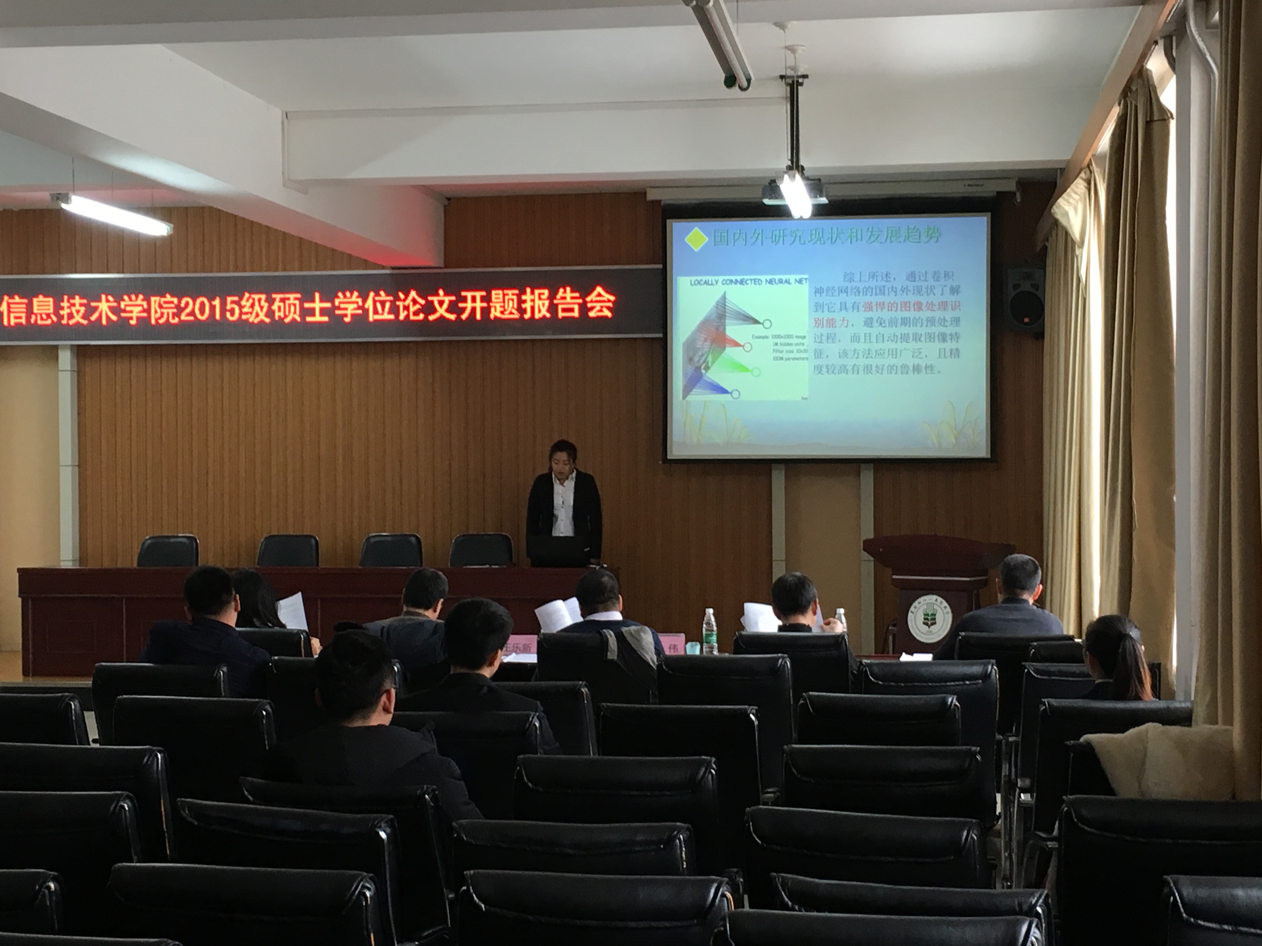 2016年12月11日上午8:30,公司2015级研究生学位论文开题报告会在信息院举行,参加开题报告32人,农业电气化与自动化专业6人,全日制农业信息化领域16人,在职农业信息化领域10人参加开题。开题报告分为专家提问、研究生回答、专家对开题报告评议、评委组组长宣读评议结果等几个环节,最终通过30人,未通过2人。