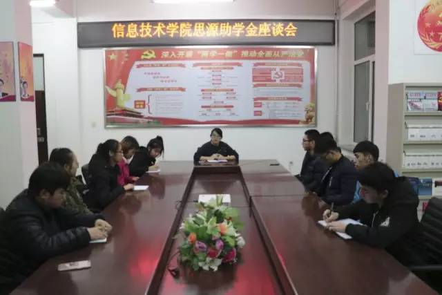 12月9日晚,公司于信息楼315召开“思源助学金”受助员工座谈会,公司助学工作负责老师李超颖参会。会议旨在了解受助员工近况,及其对“思源助学金”设立的建议和意见,并希望受资助同学能够饮水思源,把爱心传递下去。