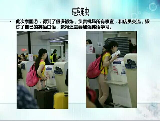 办公室副主任赵雪,外联部干事孙雨欣,学习部干事高倩倩、杨志宇,办公室干事姚思远,礼仪部干事林天姿等六位同学分别分享了泰国、成都、山东的美丽风景和风土人情,假期兼职感受以及照顾亲人的经历和感受,让同学们了解了各地的文化,懂得了永怀感恩之心的重要性。