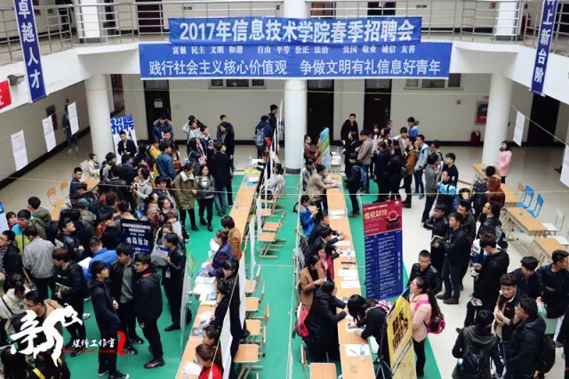 2017年3月22日,公司在信息楼阳光大厅举办了2017年春季招聘会,此次招聘会得到了各家企业的大力支持,本次招聘会共邀请31家企业来到公司招聘贤才。招聘会上院领导、各系主任、毕业班主任、辅导员均到场与各企业人事沟通交流推荐员工,并与用人单位了解目前就业市场的用工需求。