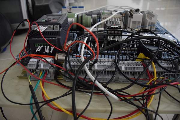 一楼的电气工程实验室、电气控制室、电工电子室……让我们觉得一楼就是一张巨大的线路板,布满了层层交织的智慧之网。