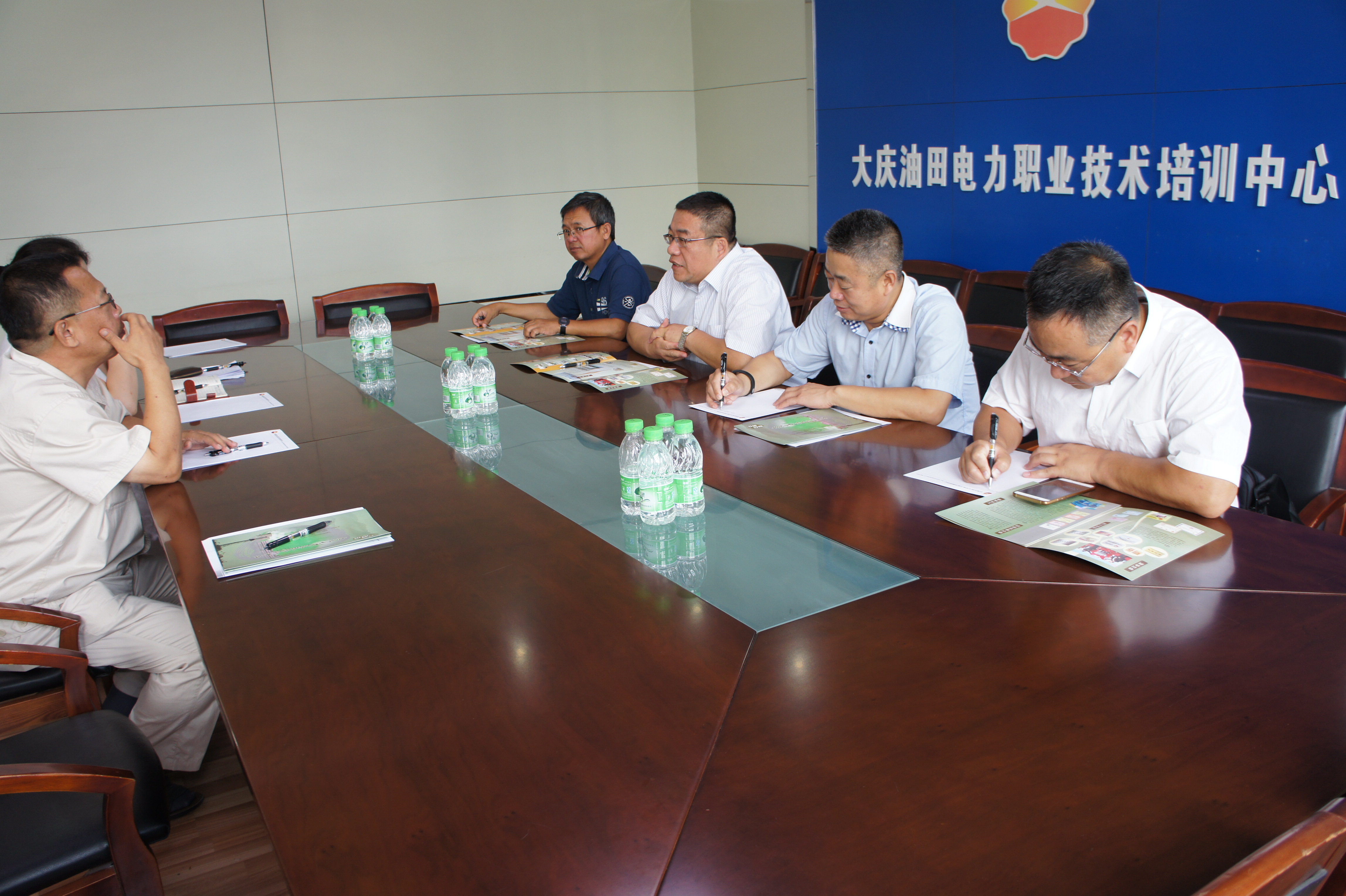 2017年8月23日上午,公司张伟经理带队到中国石油大庆电力技术培训中心开展合作交流,与培训中心领导商讨共建教学、科研、就业基地及国家电网认证考试等事宜。