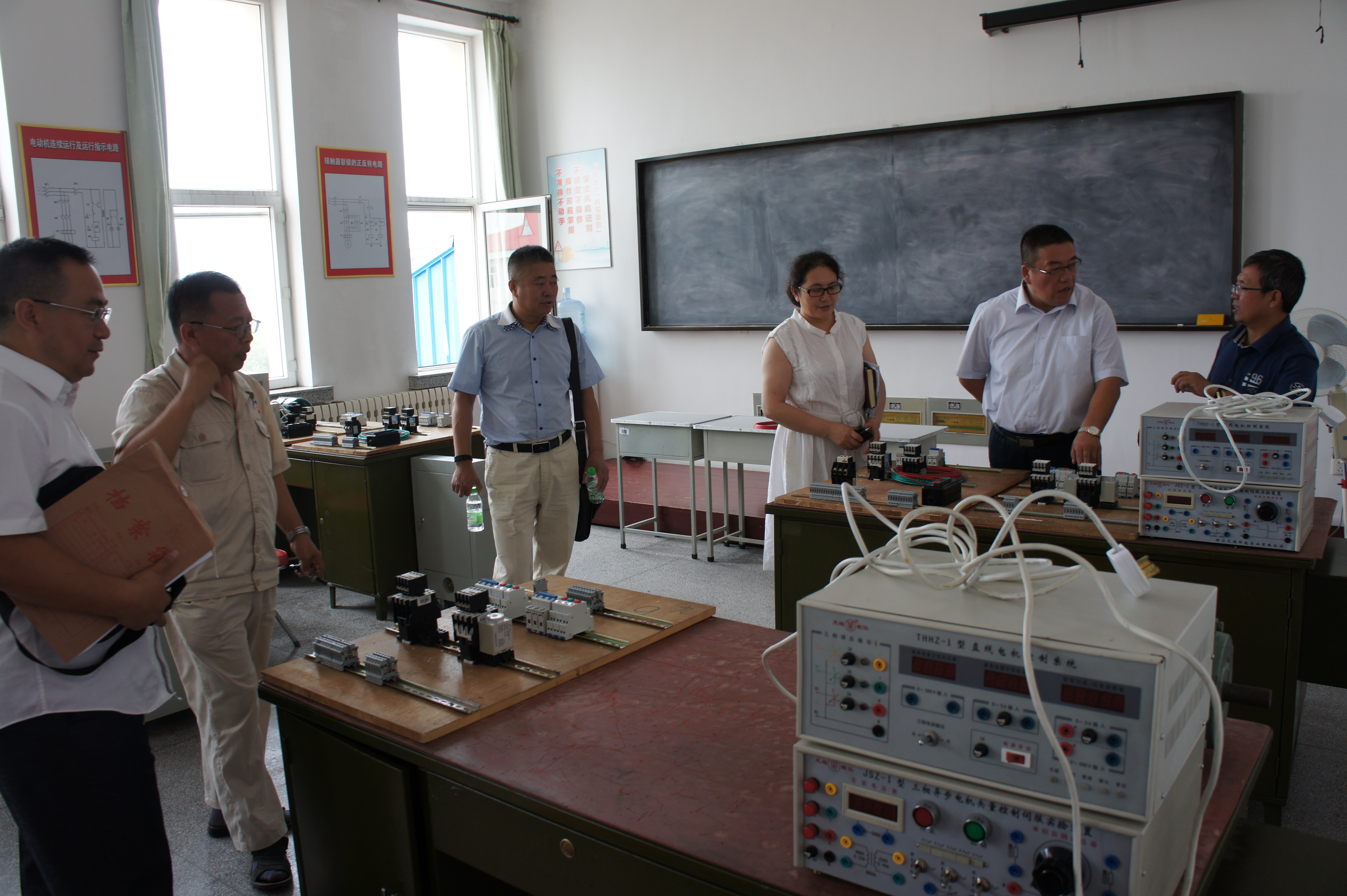 张伟经理、史国军副经理、电气系朱学东主任、教师代表李爱传等一行四人在培训中心主任张建文的带领下,参观了火电一体多模电站仿真机、110KV、35KV微机和常规模拟仿真变,110KV、35KV、6KV电压等级外线工实训场地、电机维修实训室、电力拖动实训室、PLC可编程实训室、教室等场所。培训中心副主任刘涛、田庆书及相关工作人员对各个功能区分别进行了详细的介绍。公司领导与中心工作人员进行了细致的交流和探讨,对大庆电力技术培训中心的实验实训条件及培训能力给予了高度赞赏。张伟经理表示,公司将把大庆电力技术培训中心作为教师社会实践基地、本科生实习实践基地、员工就业基地,共同培养电力系统所需人才。