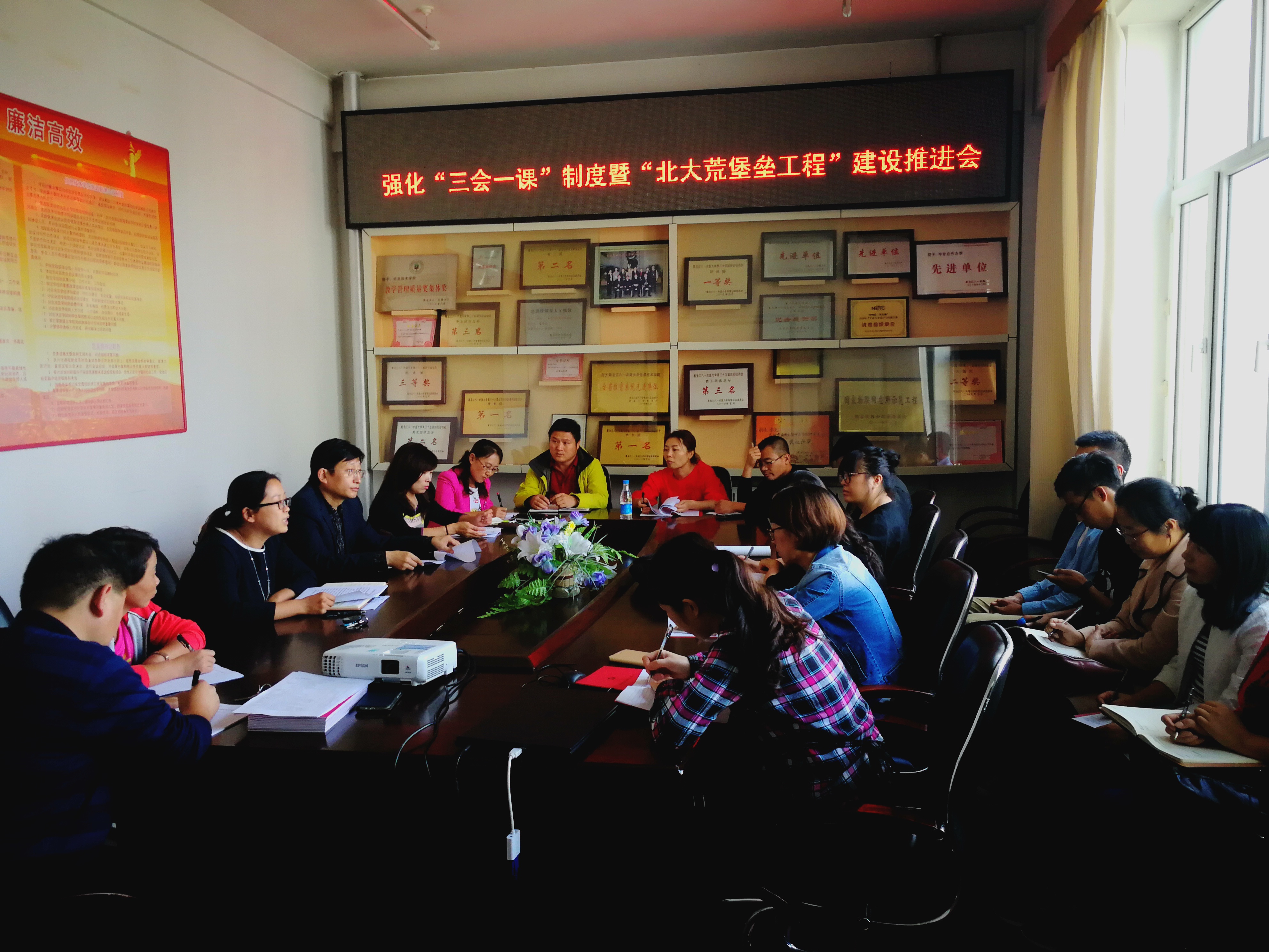 会上,全体与会人员就公司下发的《关于进一步加强落实“三会一课”制度的意见》进行再次强化学习,就加强落实“三会一课”制度的主要内容、具体要求等方面进行任务明确。副书记宋清萍就上级党组织下发“北大荒堡垒工程”实施方案、《关于扎实有效开展主题党日活动的指导意见》等关于强化党支部建设的指导精神进行讲解,希望公司各师生党支部能全面深入落实上级指导意见精神,提升党务强、业务强党支部书记队伍建设,以开展主题党日活动为载体,按照“八个堡垒”标准切实加强党支部建设。宋书记还就党支部如何加强档案建设、典型推广等进行了任务布置。