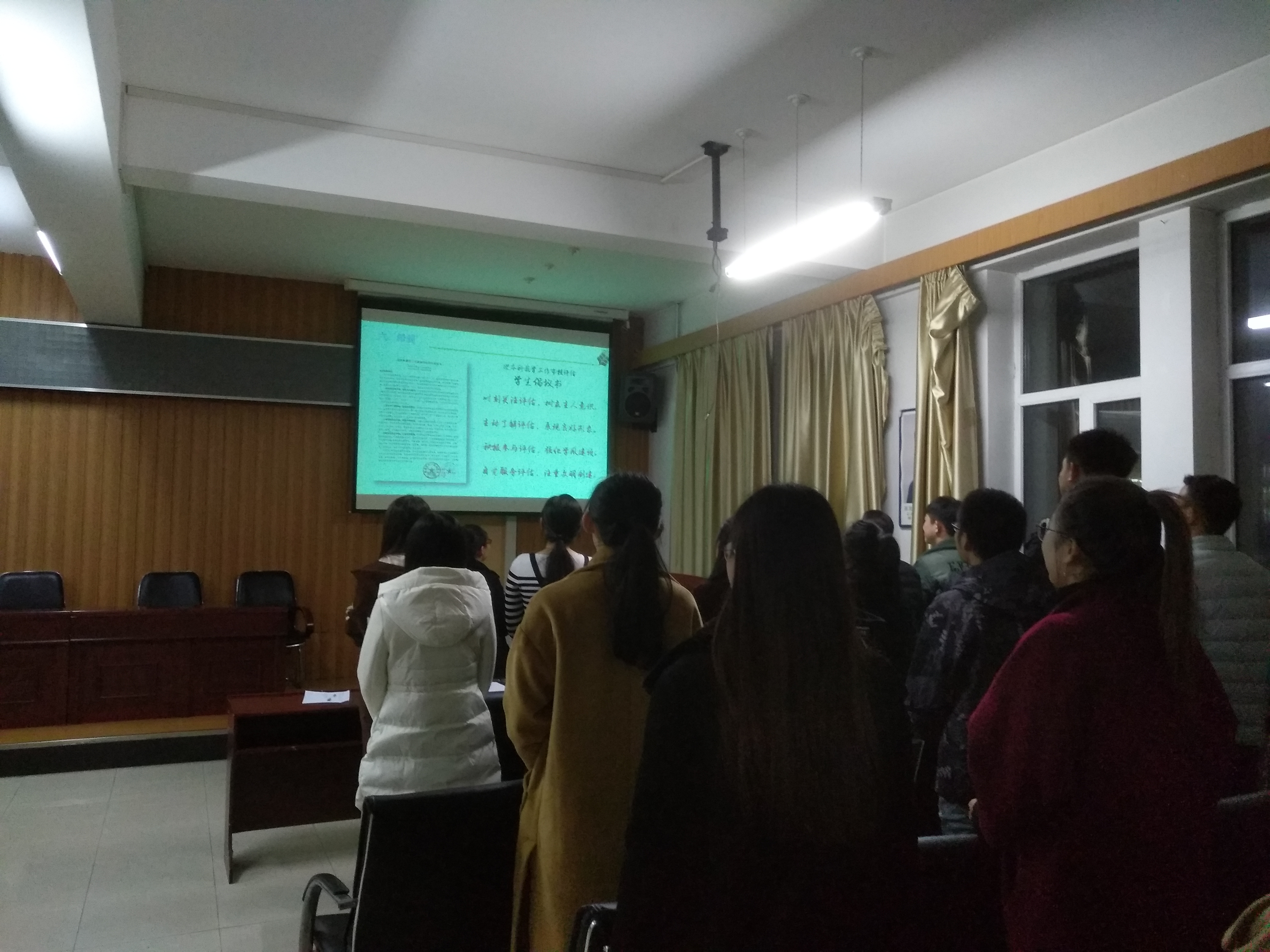 为全面迎接公司本科教学审核评估,让在校研究生了解公司审核评估,切实履行在校员工职责和义务,更好的展现公司研究生的精神风貌,11月1日,信息公司组织本院研究生开展教育培训,培训会由15级研究生农业电气化与自动化专业的赵晶同学主持,15级、16级、17级的研究生全员参与培训。
