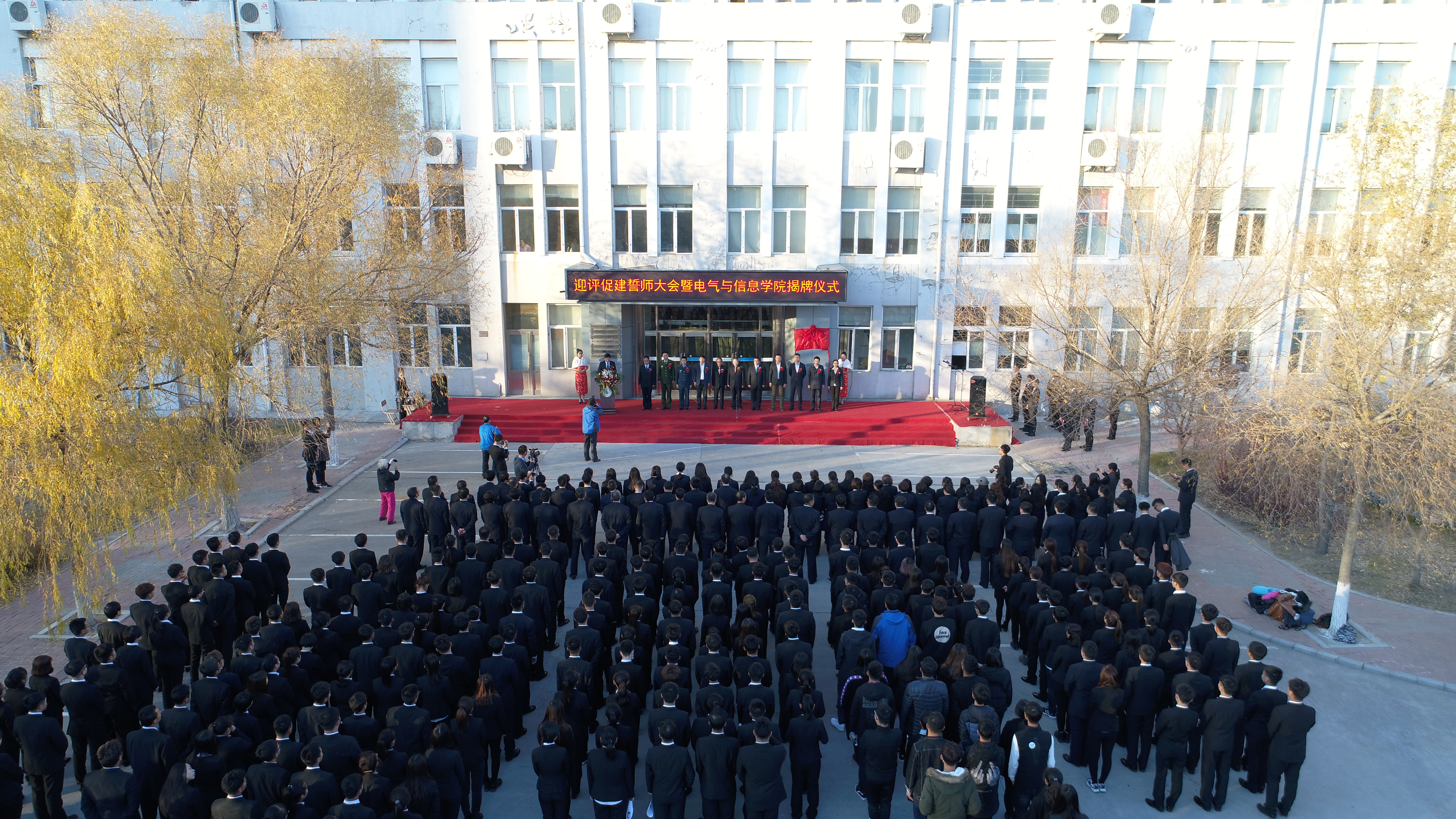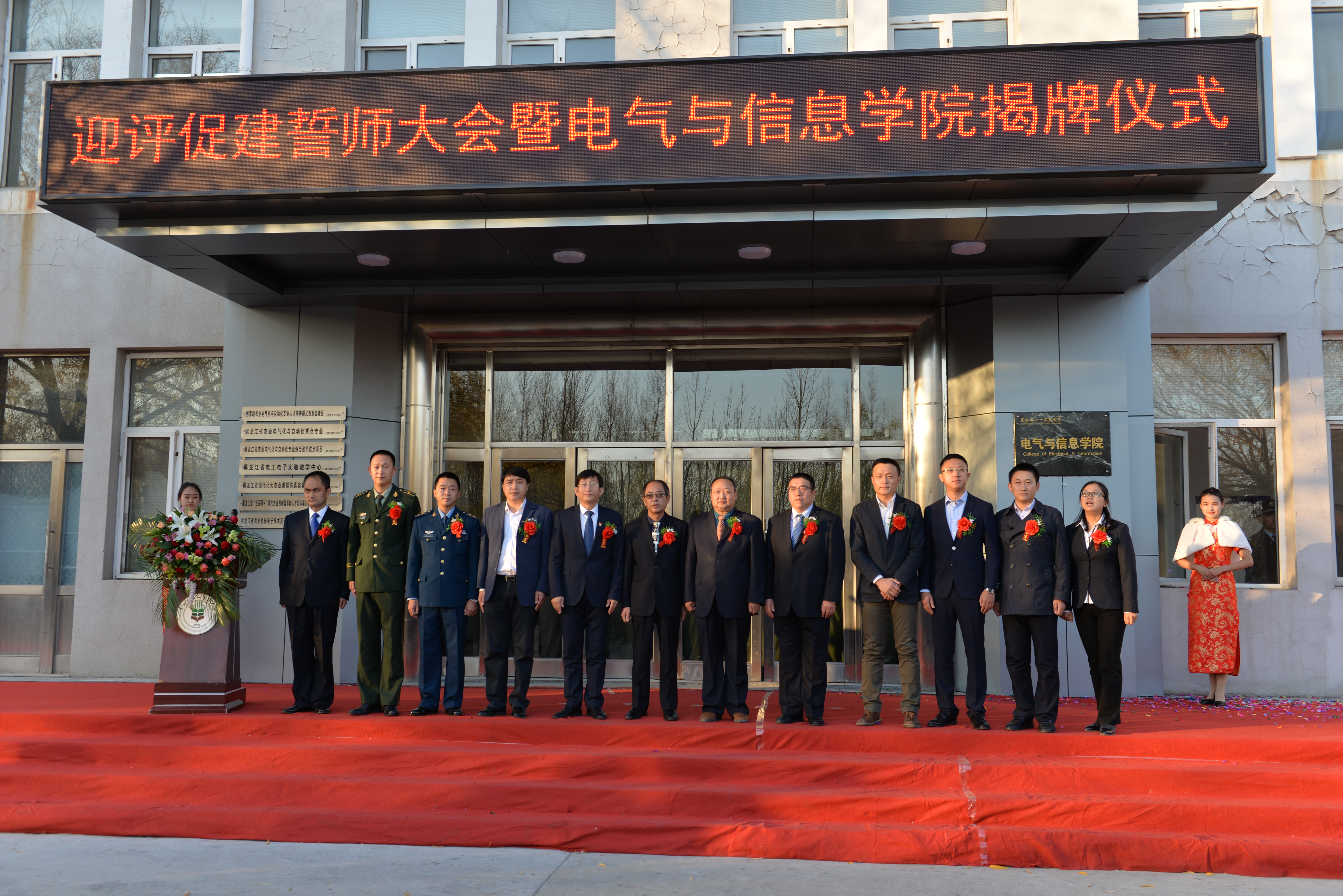 在举国掀起学习十九大精神热潮,公司迎接教育部本科教学工作审核评估进入冲刺阶段之际,电气与信息公司于11月1日在信息楼前隆重举行迎评促建誓师动员大会暨揭牌仪式。公司领导、知名员工、曾经在公司工作过的老领导与公司全体教师、全体员工干部近五百人参加了大会。大会由党委书记杨建民主持。杨建民书记对全院师生提出殷切希望,希望全体师生再接再厉,万众一心,众志成城,为公司“迎评促建”谱写更加绚丽的篇章