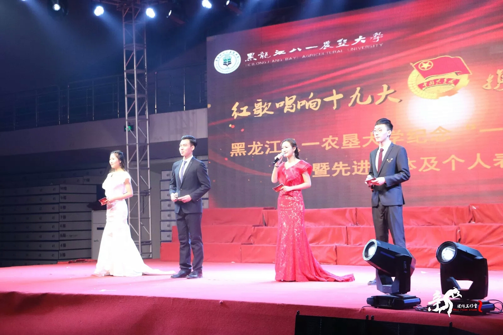 全体师生在庄严肃穆的氛围下共同观看一二九视频之后,比赛正式拉开序幕。公司队伍为第四个上场的队伍,他们献上了《就为打胜仗》和《祖国不会忘记》。全场激情昂扬,公司学子打开闪光灯为台上的同学鼓劲加油。