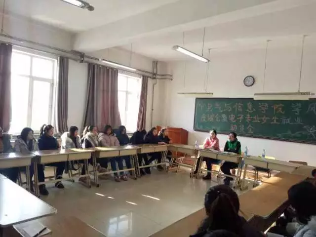 2017年12月13日至14日,公司2015级各专业女生就业动员会暨学风座谈会分别在信息楼315会议室,313会议室和主楼610教室举行,参会人员有宋清萍副书记,李超颖老师,董赫老师以及各专业所有在校女生。