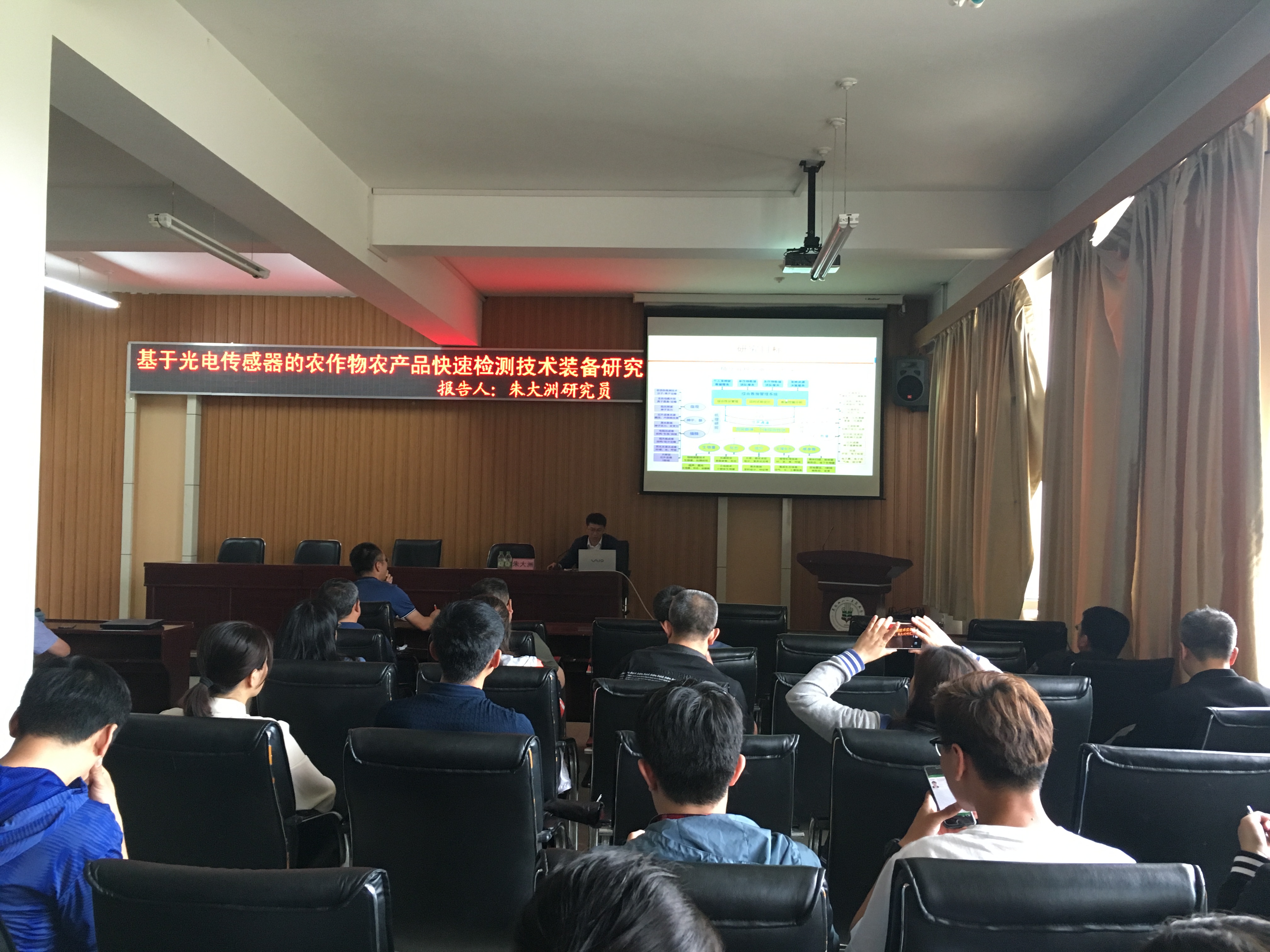 朱大洲研究员在报告中针对农产品快速检测技术装备主要讲了四方面内容:1、作物田间性状测量技术装备;2种子检测技术装备;3、近红外光谱分析模型的预判参数;4、农产品检测与营养健康信息化。而且结合自己长期的科研和服务社会经历,分享了利用农作物农产品快速检测技术装备开展农产品检测评价、及营养健康信息化方面的信息。与会师生均表示朱大洲研究员的报告与公司教师的科研方向结合紧密,从报告中大家获益颇多。