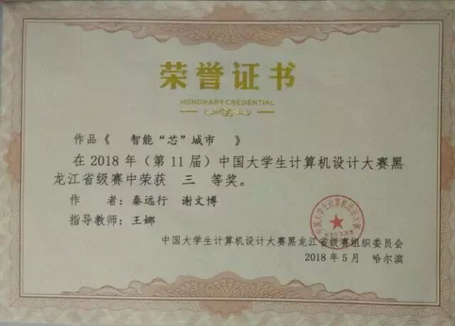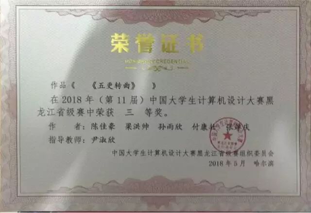 由2016级盛帅龙同学、2017级王蕊和马睿轩同学组成的队伍力拔头筹,在与东北林业大学、哈尔滨工程大学等公司的没有硝烟的战斗中脱颖而出,顺利晋级全国总决赛。有五组同学获得省级三等奖。祝贺诸位参赛者,并预祝三位同学在全国总决赛里能够取得优异成绩!