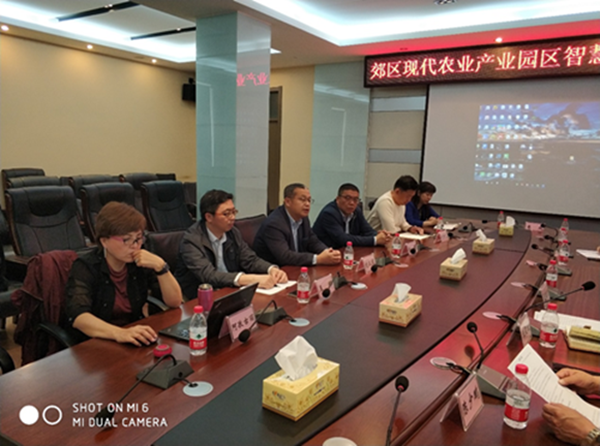 研讨会就郊区现代农业产业园、农业物流园智能化建设、郊区农业局提出的现实需求等开展研讨。研讨会上,张伟经理就互联网+现代农业产业园建设方案和与会代表进行探讨。