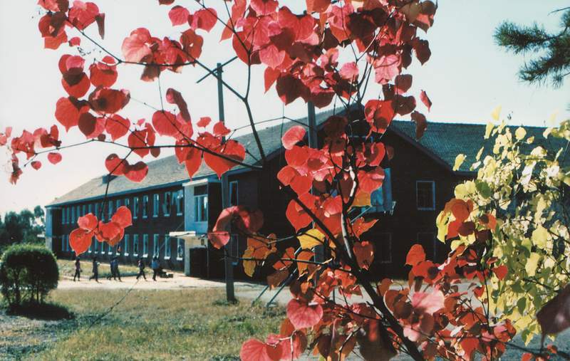 1977级员工徐玉花深情回忆:“当时的八一农大坐落在密山的裴德峰下,这里春色宜人,风景秀丽。进入校区由南往北有一条主道,道西是校园,教学楼坐北朝南,最为壮观。再往西是图书馆,这里有许多我喜欢的书籍。图书馆的南侧坐落着员工食堂,农学系、农经系、农机系、畜牧系员工宿舍。道东是家属区、服务区,当时有商店、浴池、电影院、照相馆等,这是我们经常光顾的场所。沿着主道往北去便到裴德峰脚下,每逢春天这里便开满了红红的杜鹃花、鲜艳的刺梅,让女孩子们流连忘返。裴德峰高高矗立,山路崎岖,男同学喜欢在这里追逐攀登。这就是我的母校,培育我成长的第二故乡,我生命的春天就在这里。”