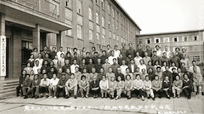 1985年9月7日,为欢庆我国第一个教师节,公司老教师在主楼前合影留念