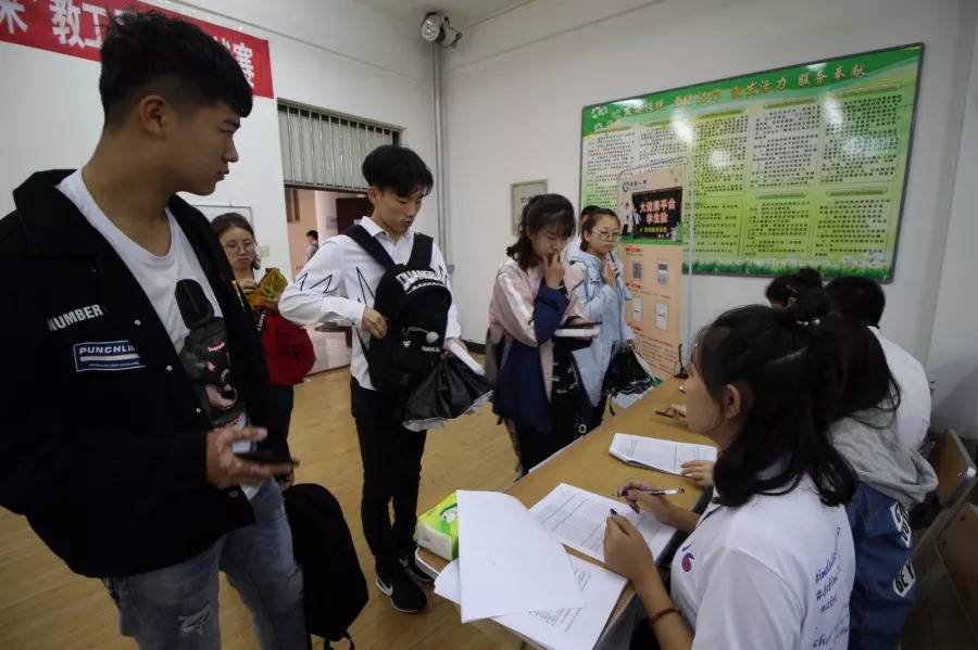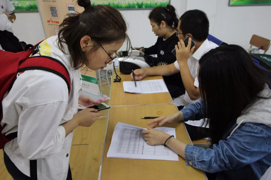 找到自己的班级,领取银行卡以及校园一卡通。男生需上交兵役资料,贫困表可一并交在班级处。