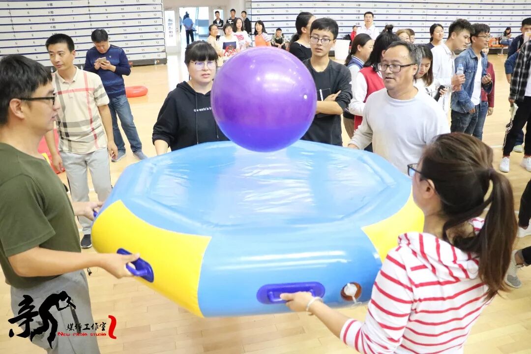 趣味运动会的各个项目充分考验同事间的团结合作。在“同舟共济”项目中,老师们匆忙地载着气垫前行,对战的小组险些碰撞,欢乐无比;在“猛龙过江”环节里,大家统一步伐,团结协作。龙舟载着老师们一齐向终点奔去;在“和谐共进”项目的角逐中,现场气氛愉悦异常……一时间,体育馆里充满了欢声笑语,连空气也带着些许甜蜜。