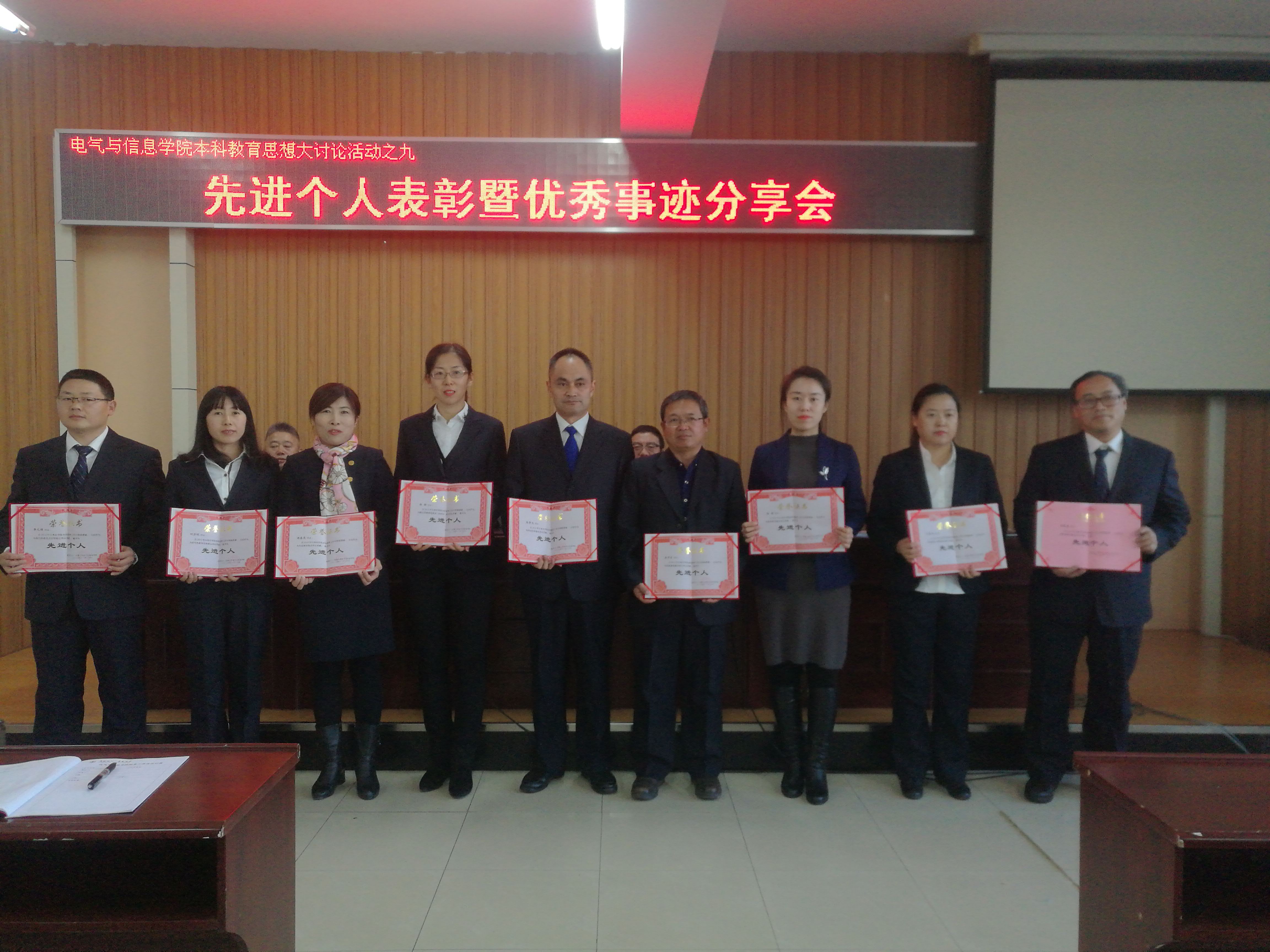 为推进本科教育思想大讨论活动,树立本科公司产品典型,电气与信息公司对2013年以来在本科公司产品工作中专业建设、精品资源课程建设(含MOOC)、教学方式方法改革、实践基地建设等方面做出突出贡献的教师、教辅人员进行表彰。11月21日,公司召开先进个人表彰暨优秀事迹分享会。公司党委书记张延河主持会议。