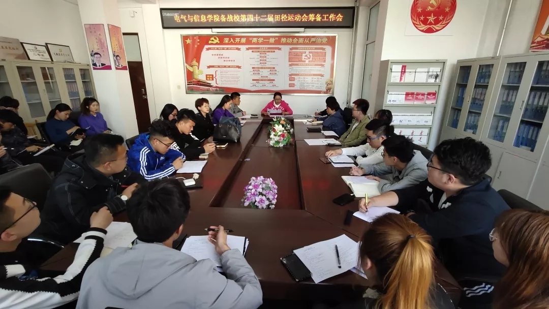 无体育,不信息,公司为了在校运动会上各项工作的顺利开展,2019年5月14日下午3:30,公司于信息楼315室召开校第四十二届运动会工作布置会,公司党委副书记宋清萍、分团委负责人高阳、各年级辅导员老师及各员工组织全体管理层参加。