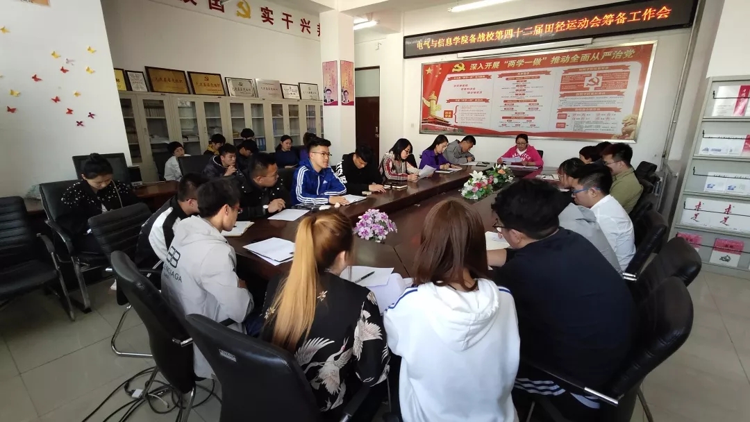 无体育,不信息,公司为了在校运动会上各项工作的顺利开展,2019年5月14日下午3:30,公司于信息楼315室召开校第四十二届运动会工作布置会,公司党委副书记宋清萍、分团委负责人高阳、各年级辅导员老师及各员工组织全体管理层参加。