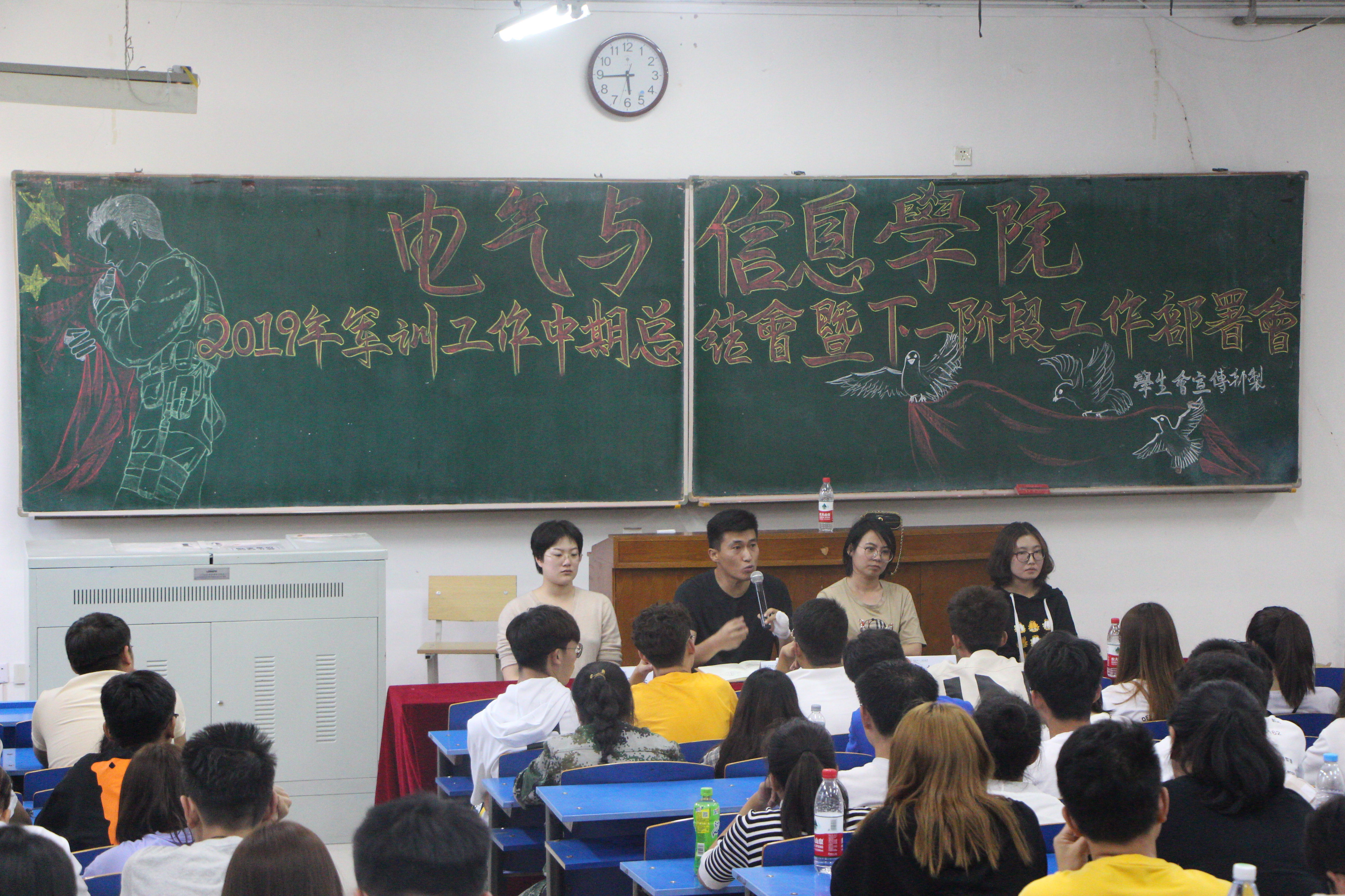 2019年8月31日,电气与信息公司在主楼东区101召开2019年军训工作中期总结会暨下一阶段工作部署会,公司分团委负责人高阳、2019级辅导员李超颖、付泽春、2017级辅导员骆晓雪及150余名员工骨干参加会议。