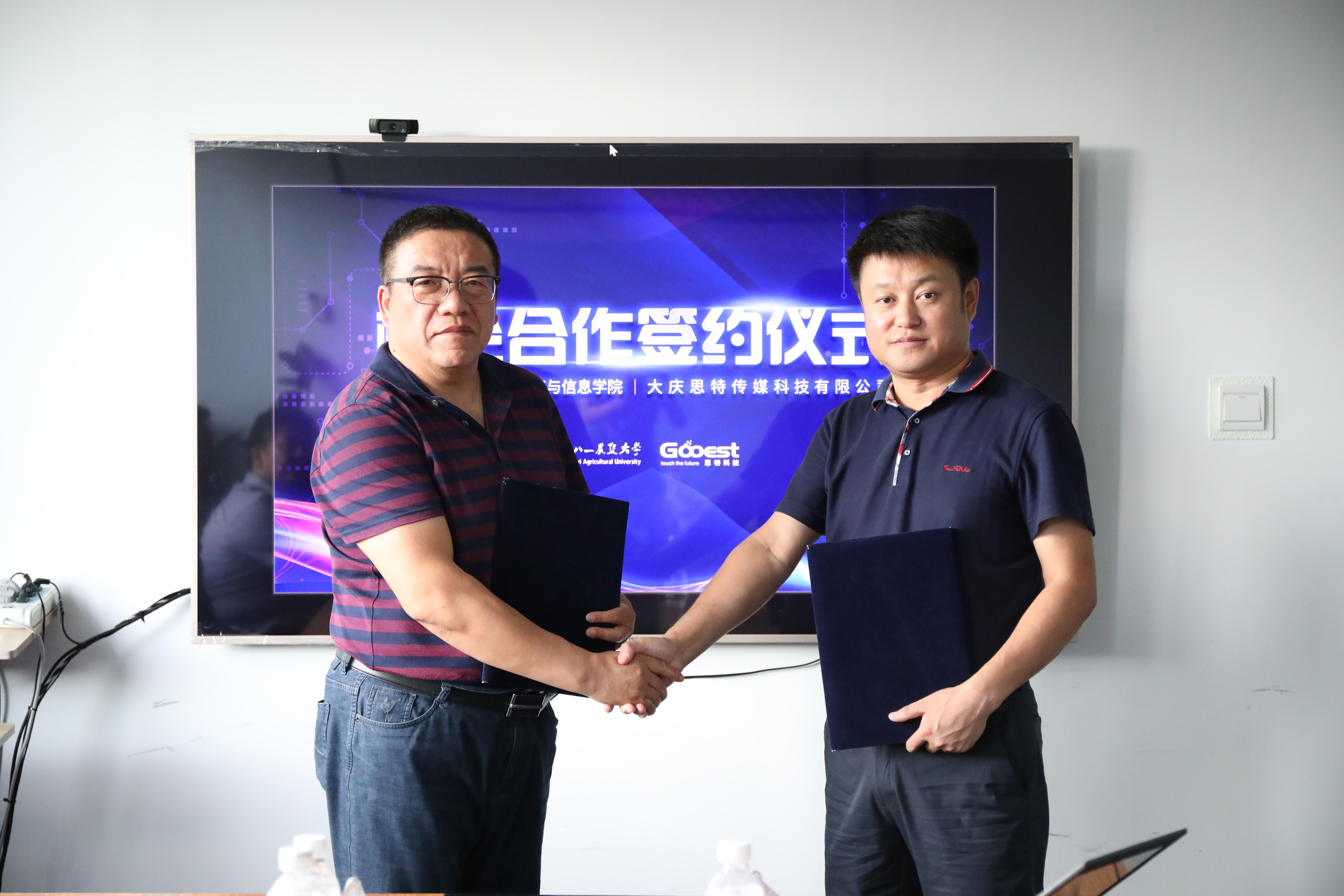 为拓宽校企合作途径,增容办学资源,9月2日,公司与大庆思特传媒科技有限公司举行“校企合作”签约仪式。公司经理张伟,副书记刘传明,计算机系主任路阳等教师与大庆思特传媒科技有限公司总经理宁广良等领导参加签约仪式。