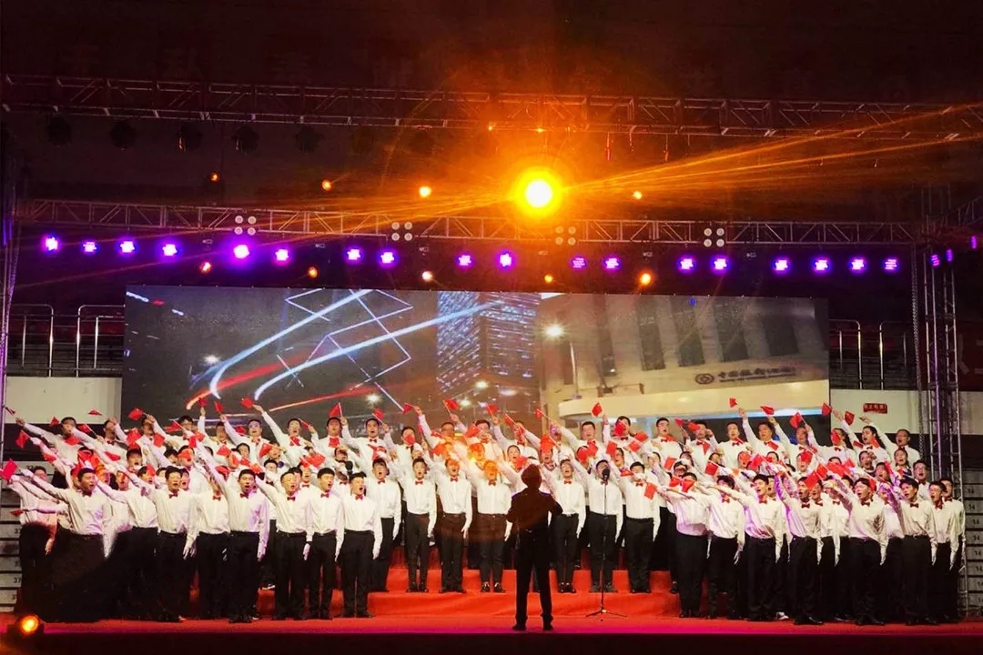 9月28日,公司110名师生在校体育馆参加庆祝中华人民共和国成立 70 周年暨迎新生的合唱演出。全体师生唱响礼赞新中国、奋进新时代的昂扬旋律。