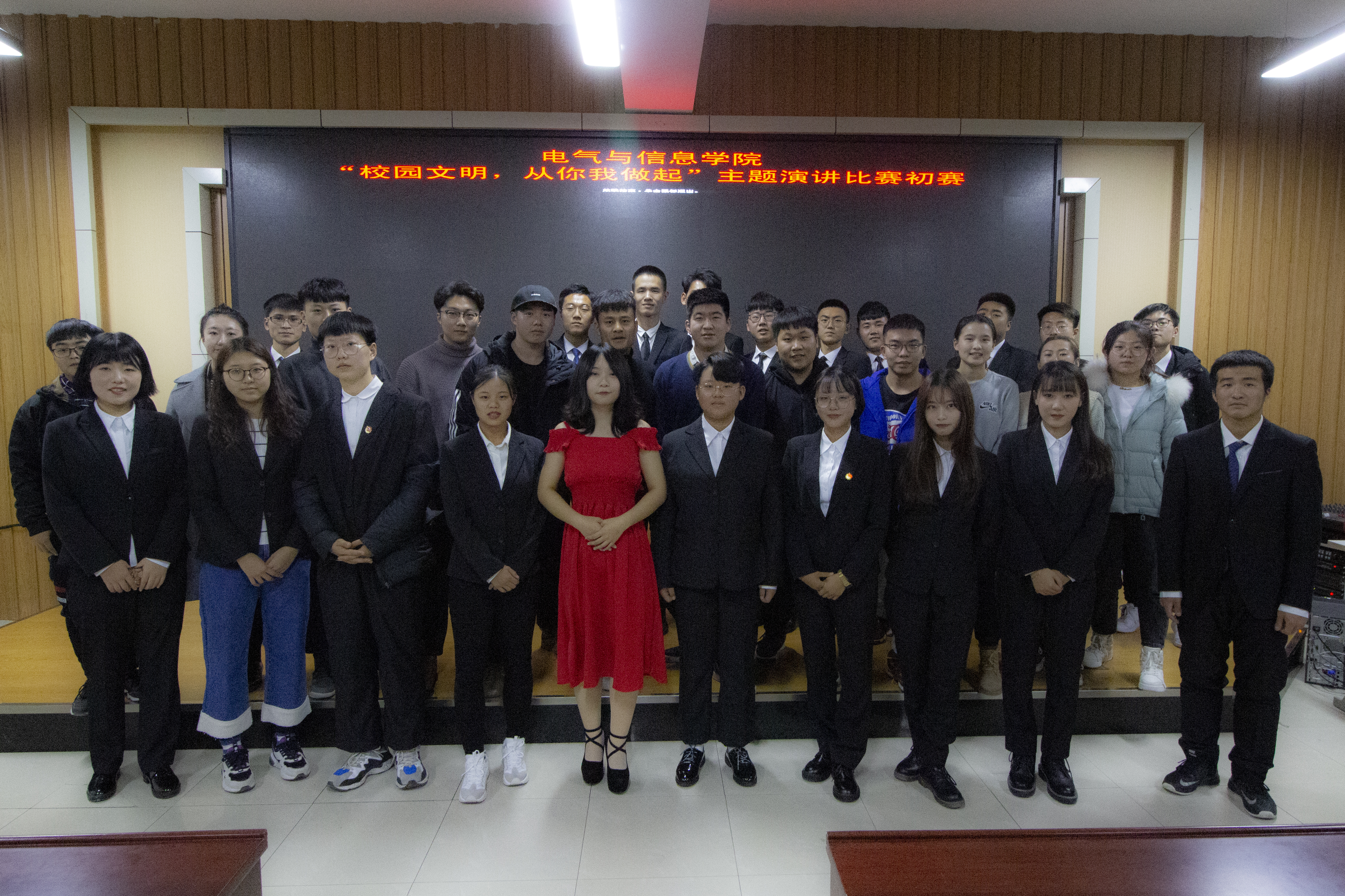 11月6日下午,电气与信息公司“校园文明 从你我做起”主题演讲比赛初赛在信息楼313室举办。在主持人开场致词后,参赛选手各展风采,在有限的时间里绽放无限的光彩,共同为观众及评委们献上了一场精彩绝伦的演讲盛宴。初赛共有21名选手参赛,最终9名同学进入决赛。此次比赛的举办,深刻的揭露了校园不文明现象,给广老员工以警示,呼吁全体同学“校园文明 从你我做起”。(文稿/员工会 编辑/栗世纪 责编/韩潍)