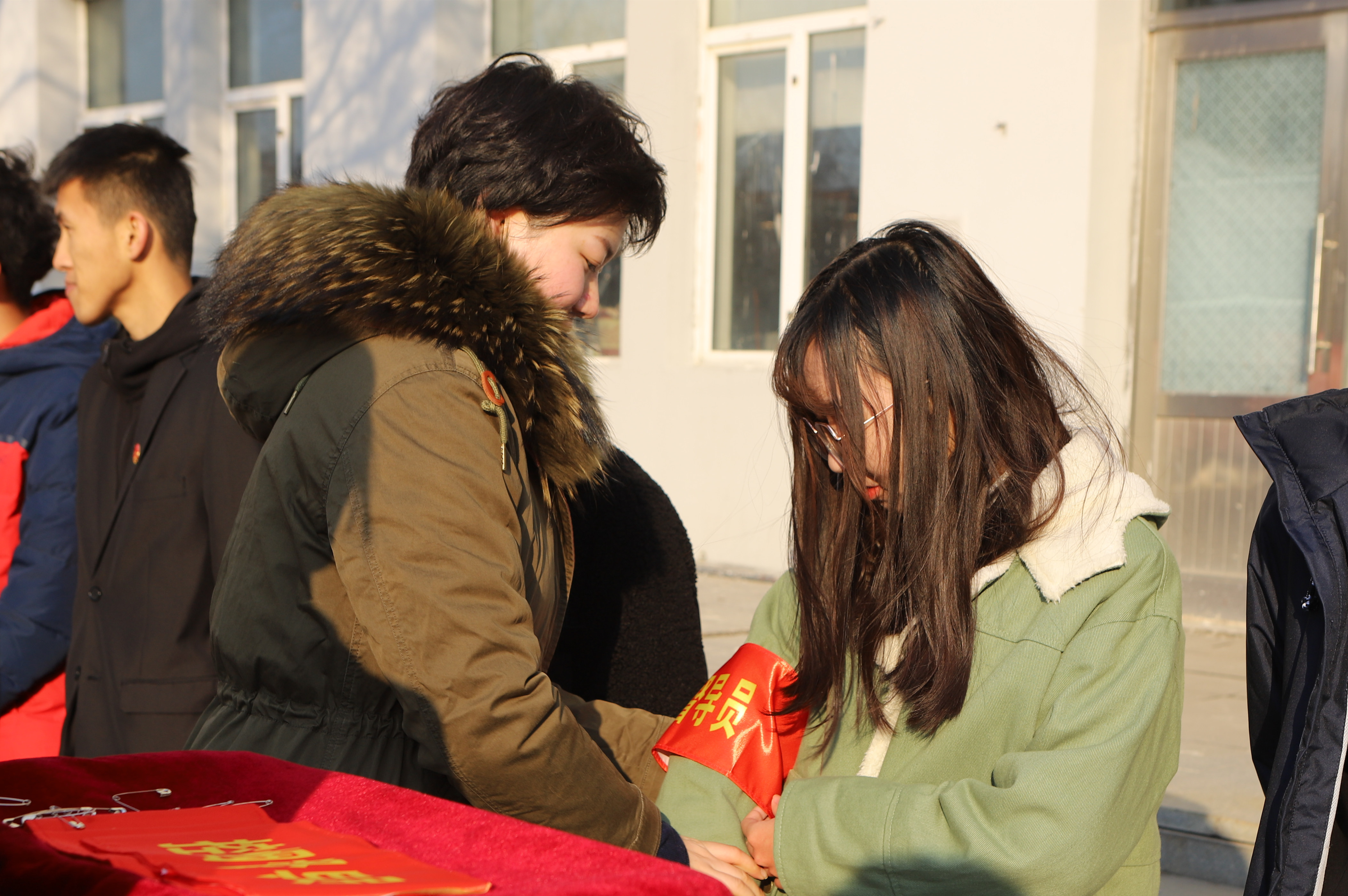 接下来,全体在场同学庄严宣誓,进行禁烟承诺,随后两位老师为各班代表发放禁烟监督员臂章。最后,同学们纷纷在禁烟宣传条幅上进行签名。