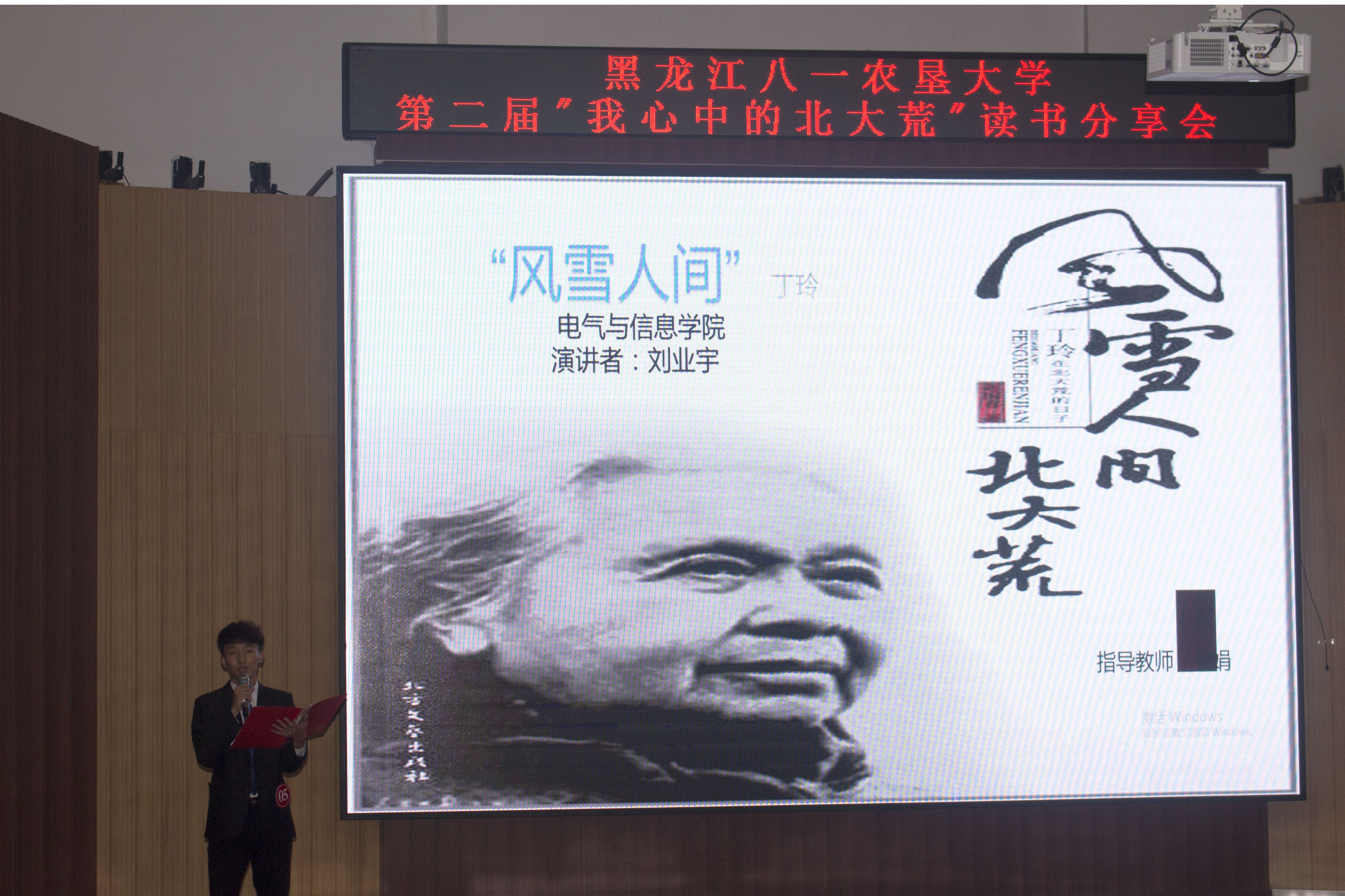 来自各公司的参赛选手通过PPT、配乐朗诵等形式来表达自己对北大荒著作的理解和感悟。电气与信息公司的刘业宇同学通过满含深情的分享、完美的舞台感染力将在场师生带回到那段激情燃烧的垦荒岁月,使大家更深层次的了解到"艰苦奋斗、勇于开拓、顾全大局、无私奉献”的北大荒内涵精神。最后,他以高分荣获本届比赛的“最佳风采奖”。