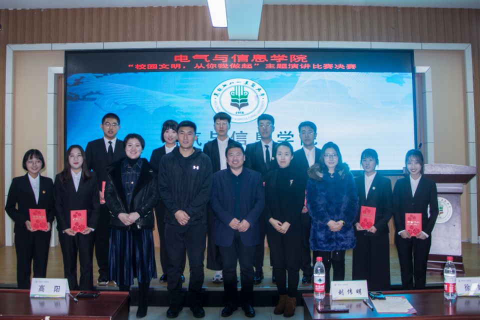 11月13日晚6点,电气与信息公司“校园文明从你我做起”主题演讲比赛决赛在信息楼313室举办。出席本次比赛的领导和老师有刘传明书记、高阳老师、徐娟老师,付泽春老师和骆晓雪老师。通过前期初赛选拔,最终进入决赛的共有9位选手。