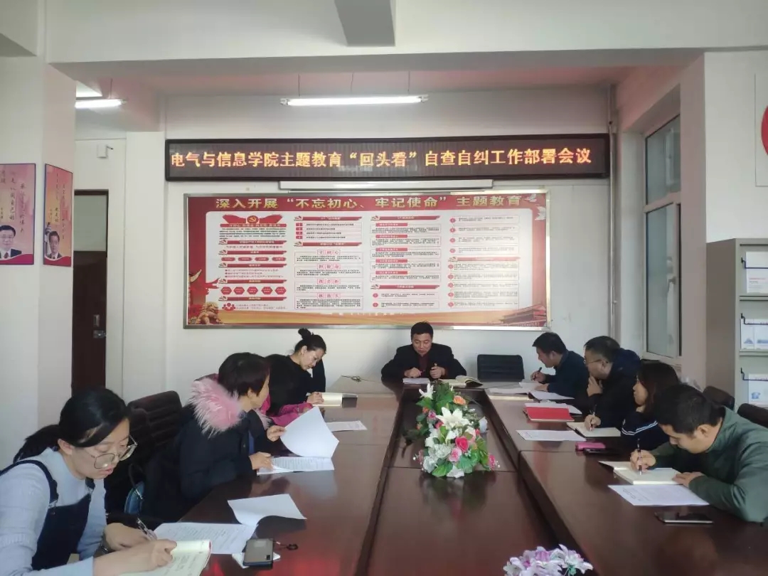 落为实11月7日省委第二批主题教育推进会的部署和省委第四巡回指导组的工作要求,11月15日下午,电气与信息公司在信息楼315召开主题教育“回头看”自查自纠工作部署会议。电气与信息公司党委书记张彦河、党委副书记刘传明出席本次会议,公司教工和员工党支部书记全员参加。