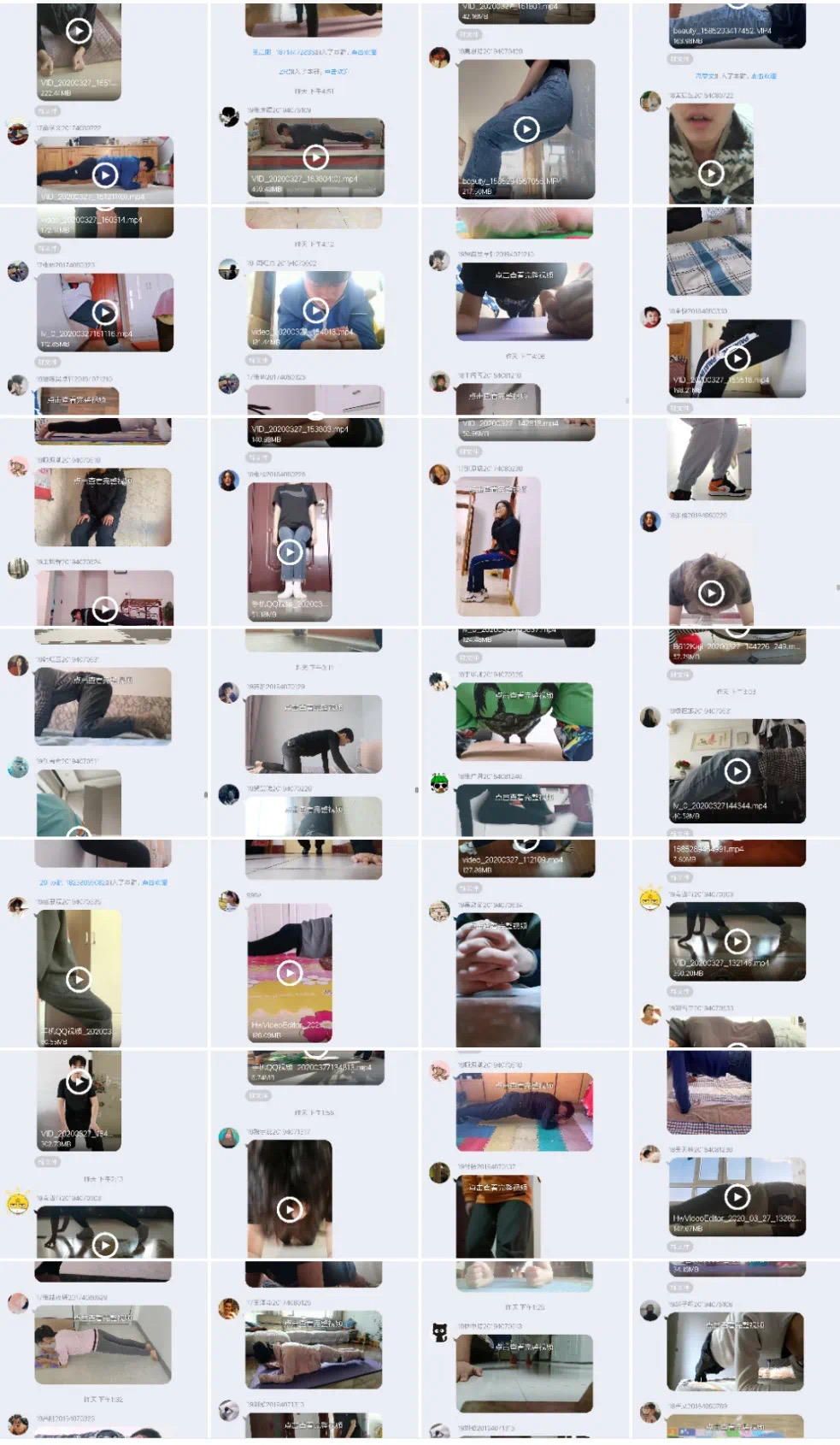 每名参赛者以年级姓名学号命名,这更像是他们的宅家抗疫的“勋章”,宅家也能提高锻炼意识,强心健体,他们用实际行动来响应公司公司号召。数“芳华”人物,还看今朝。