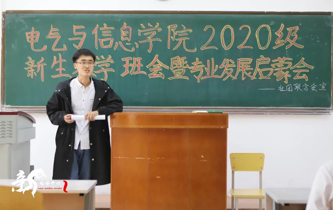 九月金色的时光,迎着凉爽的秋风,“信小媒”代表电气与信息公司欢迎来自五湖四海的小萌新们。在迎新的各项工作结束后,于9月27日15:30时在文理楼开展了2020级新生入学班会暨专业发展启蒙会。在各班班主任及员工骨干的引导下,新生们很快找到了自己的班级,并有序入座等待着大学里的第一次班会。