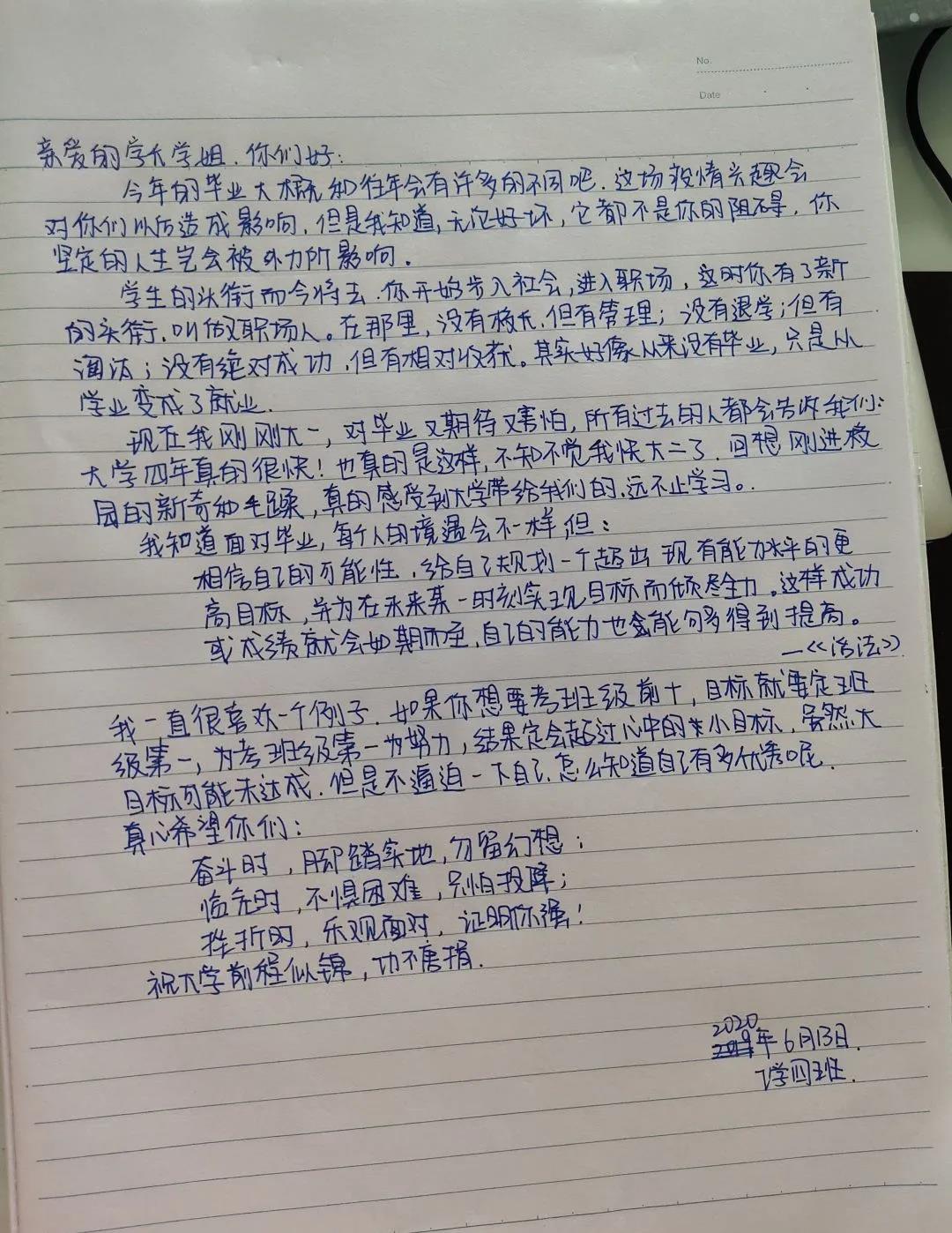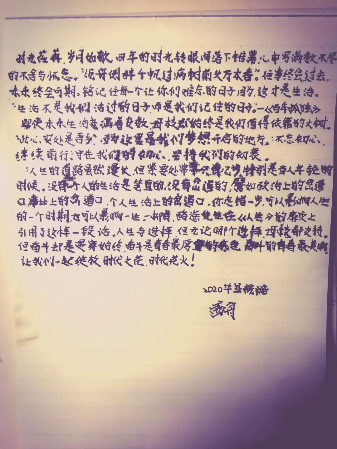 又是一年毕业季,留恋昔时书香里。谁言雁去归无心,感恩心泪沾满襟。突如其来的疫情让2020届毕业生迎来了一个最为特殊的毕业季。尽管有疫情的阻隔,但是我们的心是相连的,曾经与你们在一起的画面,张张浮现在脑海中。一千多个日夜的相处,铭刻在记忆中的,是欢乐的时光,纯真的岁月,到了离别这一天,只想以友情的名义,真诚的为你们送上祝福。