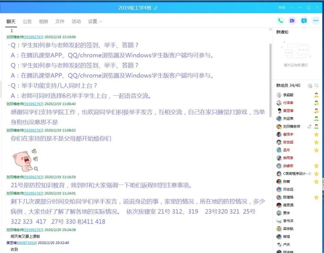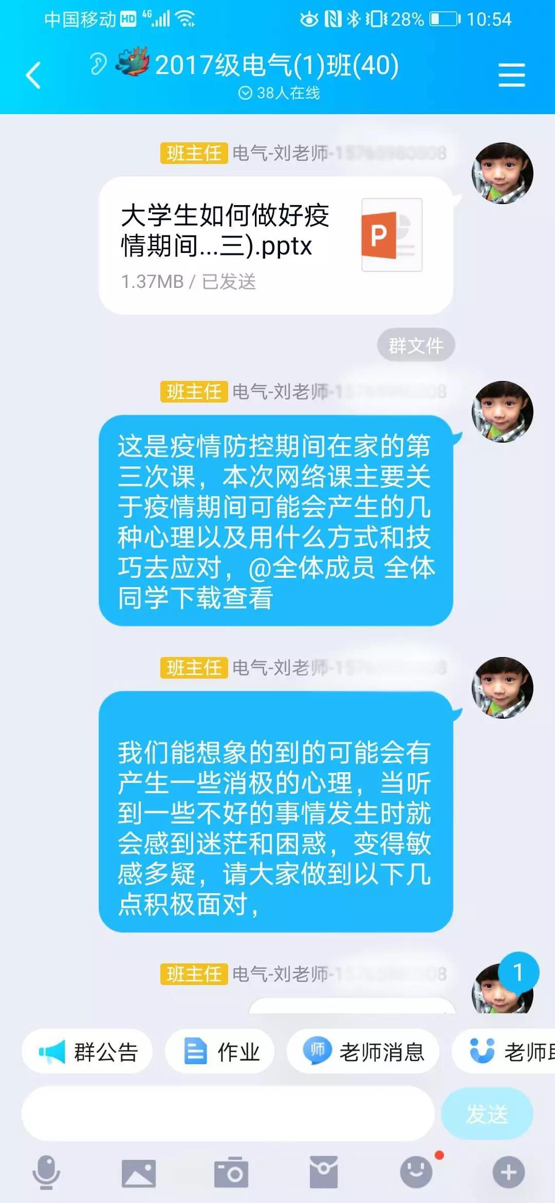 2020年2月21日上午9时,电气18-1班同学通过QQ视频会议的方式,举行了“防控新冠肺炎知识讲座”,电气18-1班班主任任守华为同学们进行了相关知识的宣讲,并对近期的班级工作进行了总结,班级同学全员参加。班会内容如下: