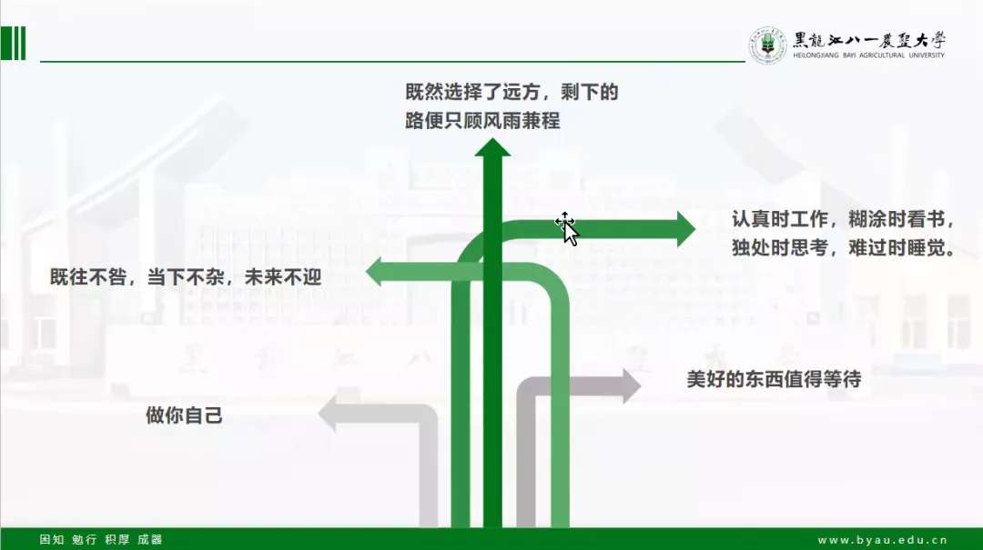 在光滑的冰面上行走容易摔倒,是因为上面没有坎坷,点燃激情,秉持希望,放飞梦想,热情高丈,这些是青春的力量,这些是我们的力量!愿每一个倾心付出的人都将收获耕耘的果实!
