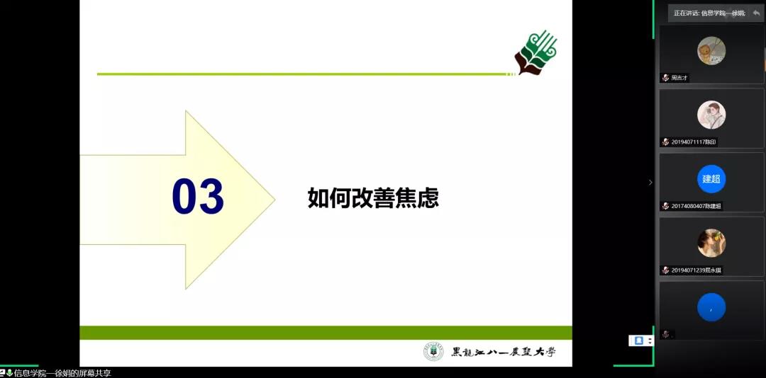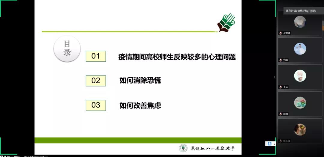 按照省教育厅和公司心理中心的有关部署,为加强心理健康教育工作,进一步提高工作针对性,针对疫情防控期间师生心理状态,6月22日晚6:30分,电气与信息公司组织开展了专题心理讲座。电气与信息公司徐娟老师通过腾讯会议为老师、同学们进行了一场题为:疫情期间师生如何消除焦虑、紧张情绪的心理健康知识讲座。