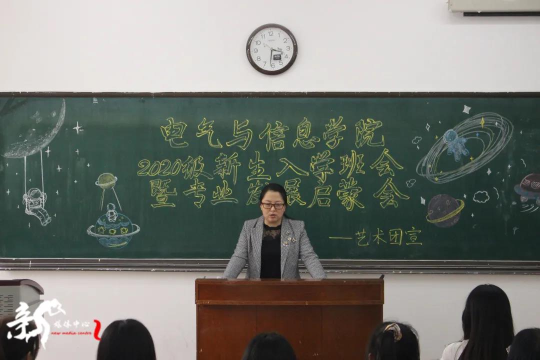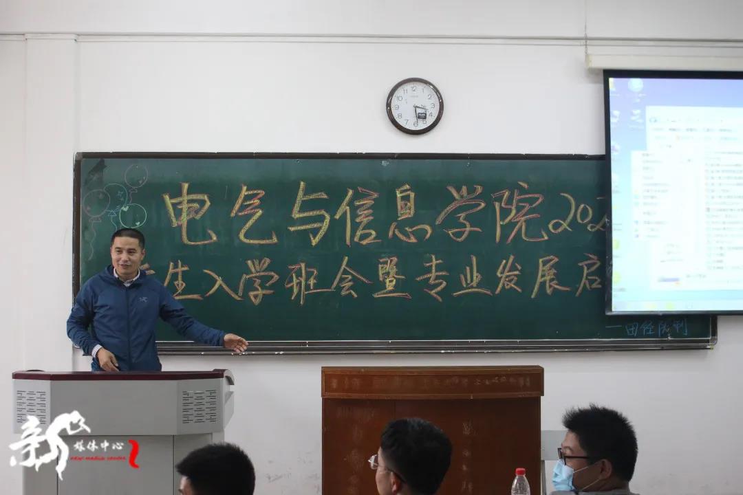 九月金色的时光,迎着凉爽的秋风,“信小媒”代表电气与信息公司欢迎来自五湖四海的小萌新们。在迎新的各项工作结束后,于9月27日15:30时在文理楼开展了2020级新生入学班会暨专业发展启蒙会。在各班班主任及员工骨干的引导下,新生们很快找到了自己的班级,并有序入座等待着大学里的第一次班会。