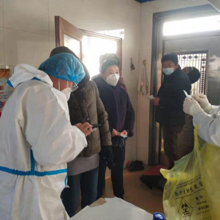 我在零下三十度的环境下进行核酸检测,虽然寒风刺骨,但我对家乡的热爱却是火热的。我主要负责信息采集、发采样管、引导检测、终端信息录入。我们按照分工各司其责,配合医护人员工作,一切都有条不絮地进行。对于一些卧床不起的老人,需要我们深入家庭、挨家挨户的进行检测。