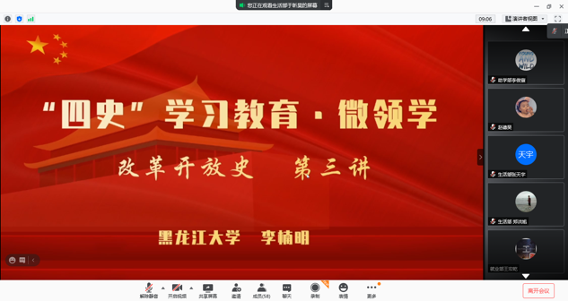 此次课堂由黑龙江大学李楠明教授讲述改革开放史第三讲,在李教授的讲述下大家加强了理想信念、提高了思想境界和党性觉悟、夯实了不忘初心、牢记使命的思想根基、推进了学习教育制度化常态化,不断筑牢拒腐防变的思想堤坝。