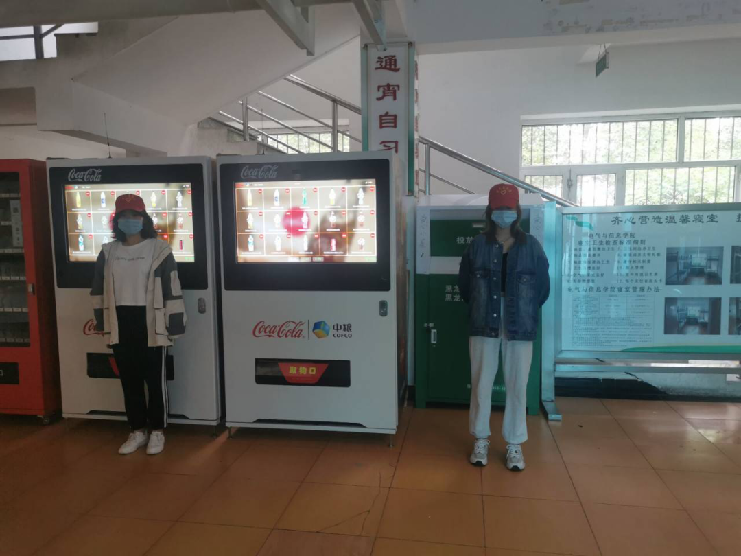 (谭淼月、张雨萌同学在执行寝室楼站岗工作)