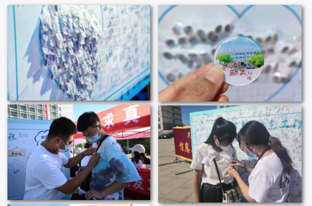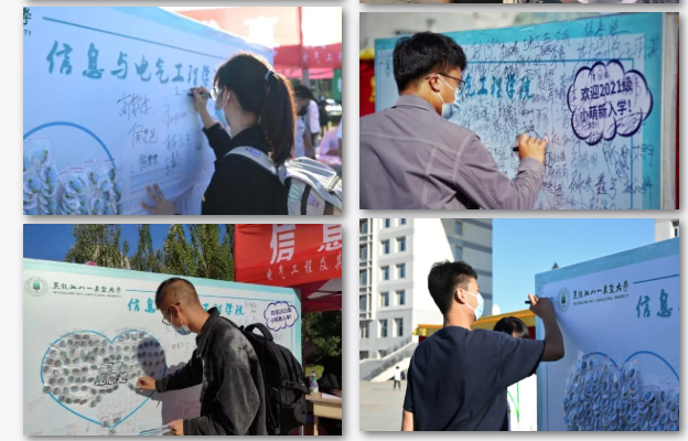 为了迎接2021级新生到来,u8国际平台在主楼前广场和体育馆的公司接待处摆放了“信电徽章纪念墙”,前来报到的新生可以在纪念墙前签名、合影留念。同时,由新生辅导员、员工志愿者为新生佩戴刻有“走进信电 励志行远”字样的纪念徽章。一枚枚徽章代表着公司老师、学长学姐对新同学的翘首企盼,更是期望他们在大学四年能够不负韶华、筑梦青春。公司党委书记董广芝在纪念墙上签字,表达了对新生的期许展望。