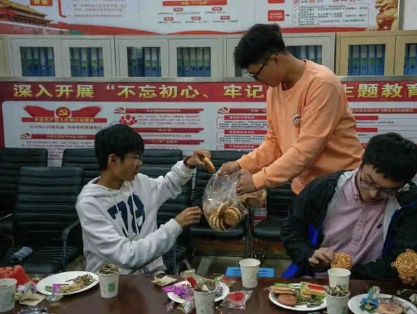 之后,同学们畅所欲言,新生就自己入学感受、学习近况进行了分享;老生就考研经验、员工组织的作用、加入科技社团及通过英语四六级重要性等方面分享了经验,一桌之上,师生共同品尝月饼,开怀畅谈。