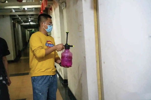 在工作开展前,工作人员将84消毒液按比例进行稀释,稀释好后对房间进行消毒,同时还对洗手间在内的所有卫生死角进行了消毒清理,并在消毒后,告诉大家开窗通风。