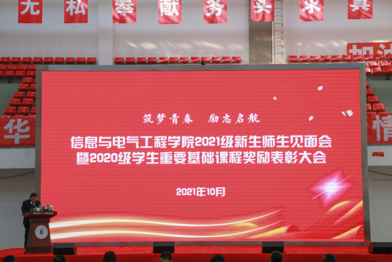 10月23日,2021级新生师生见面会暨2020级员工重要基础课程奖励表彰大会在体育馆举行。公司党委副书记高宏出席活动,校教务处处长冯世德、员工处处长金耀武、校团委书记李颖,公司领导班子成员、全院教师及全体2020级、2021级员工参加了此次活动。