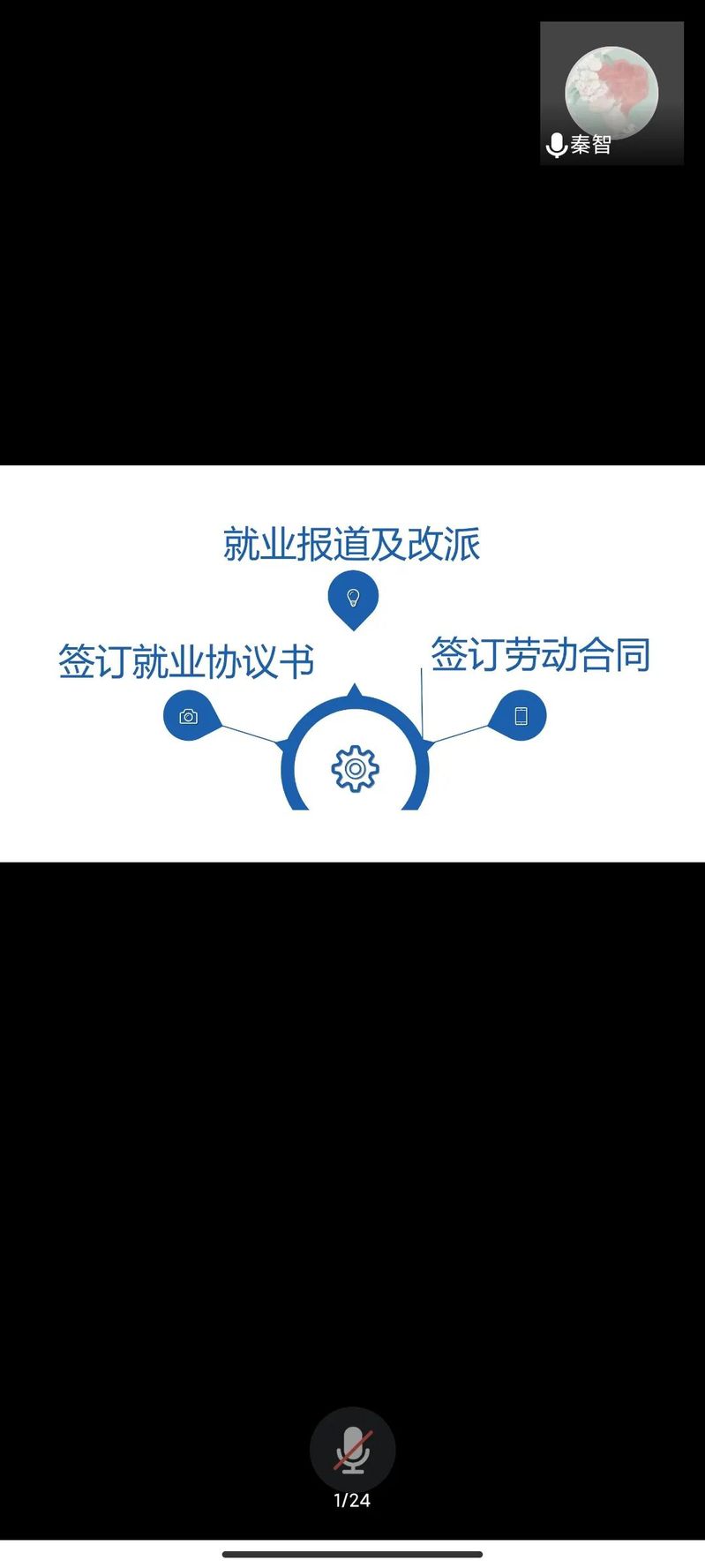 2月19日,“就业不打烊 云端促就业”系列讲座第四期举办,主题为“就业流程”讲座,由辅导员秦智主讲。本次讲座主要从就业类型、三方协议、就业推荐表、报到证等方面进行了说明,使同学们对就业相关流程有了清晰了解。