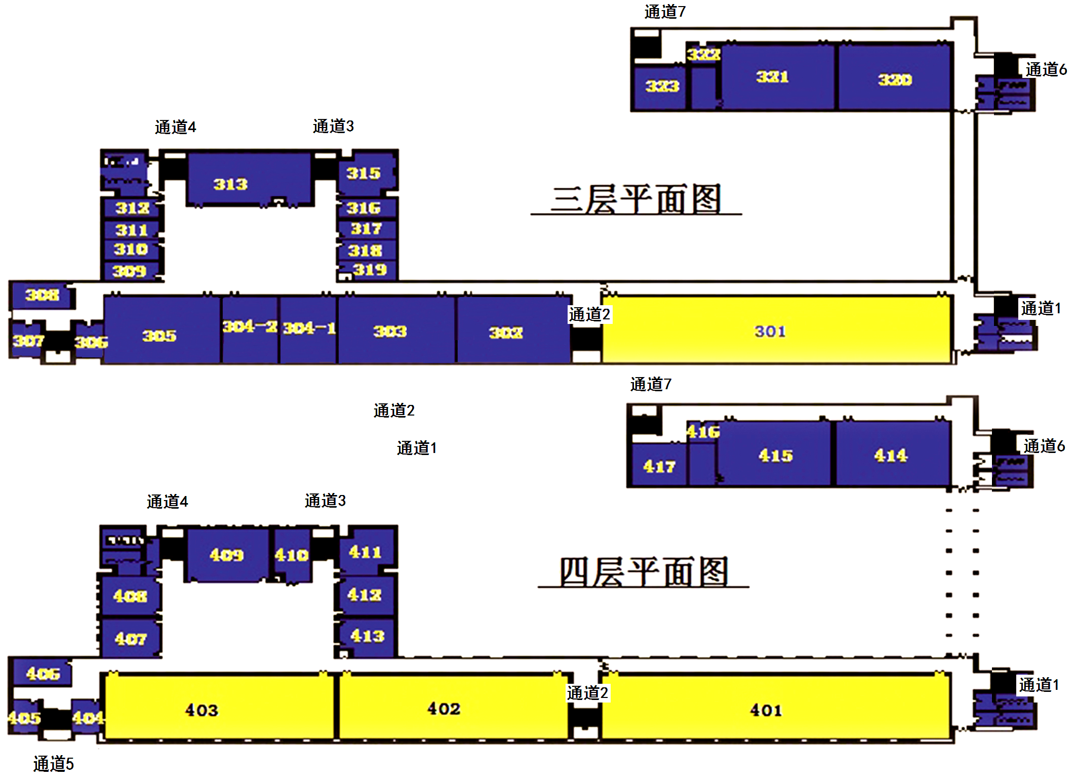 通道3:205、303、402、304、319、402、410、411、412、413走中厅东侧北楼梯疏散撤离。