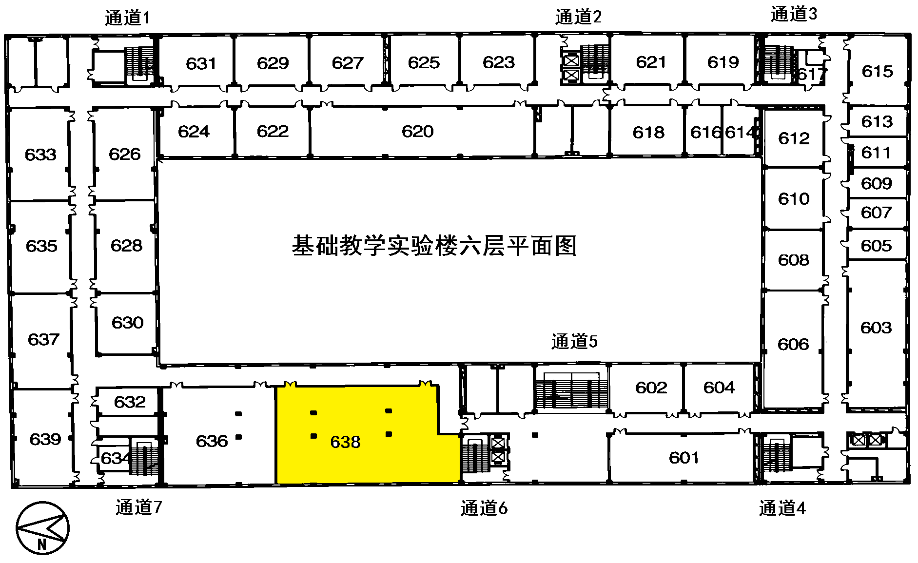 通道5、通道6:基础教学实验楼638室 走通道5、通道6楼梯疏散撤离